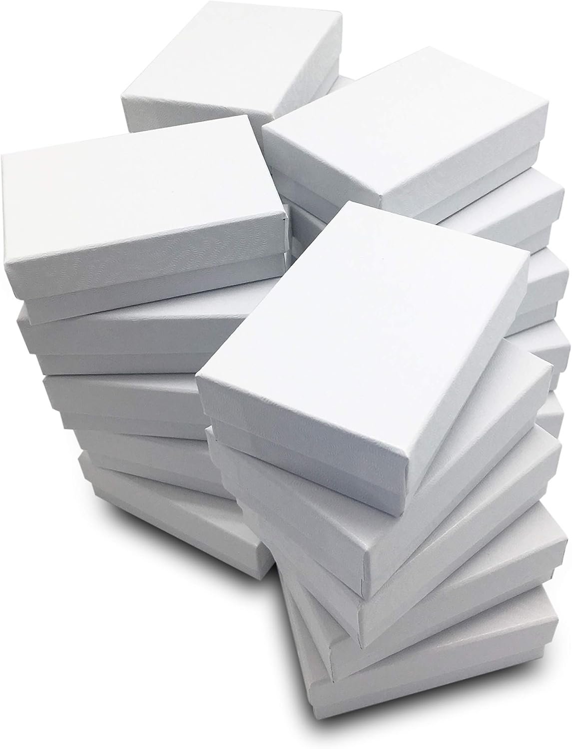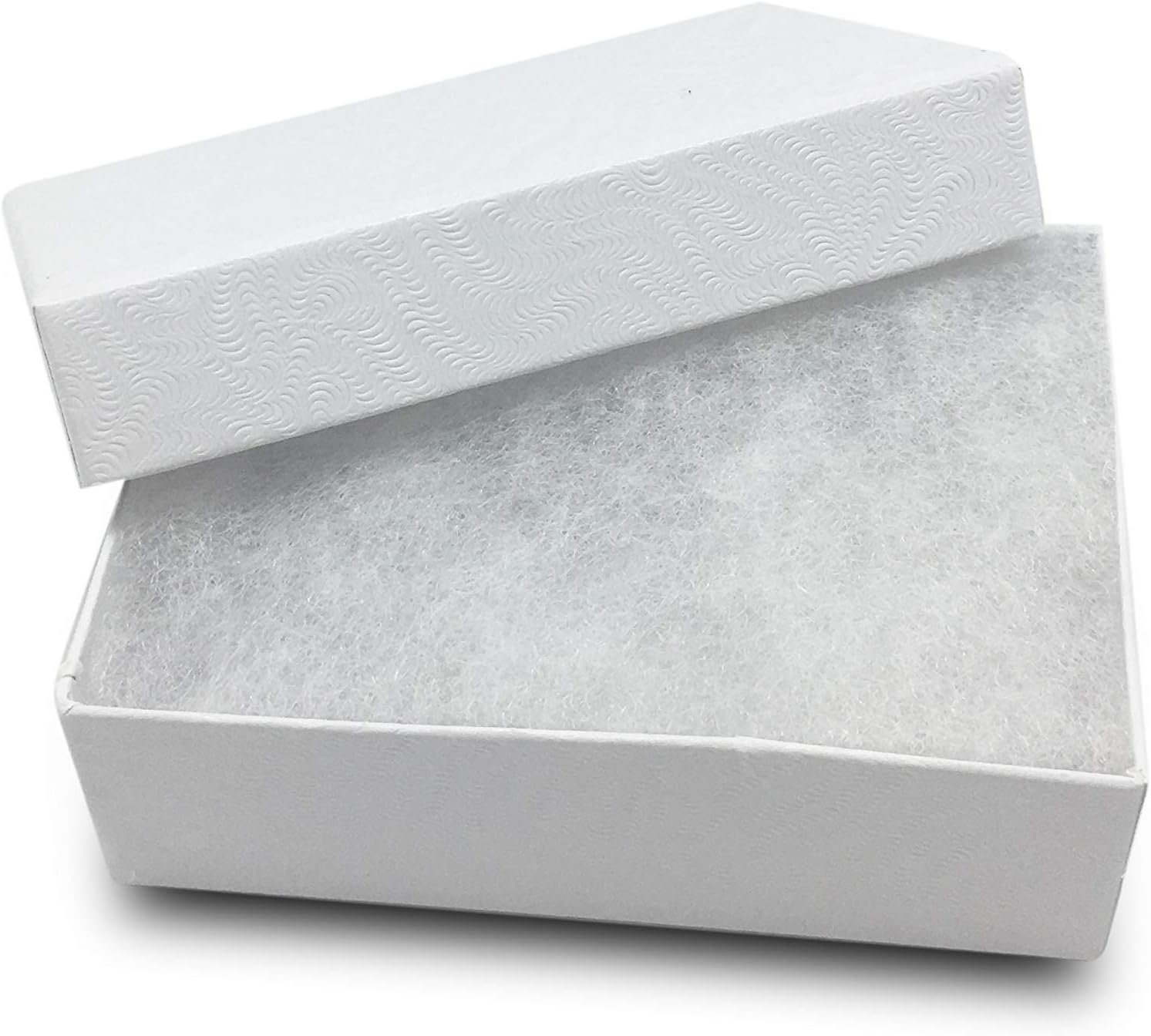 TheDisplayGuys – 100-Pack #32 Cotton Filled Cardboard Paper Jewelry Boxes Gift Case – White Swirl (3.3″ x 2.3″ x 1.0″) – for Shipping or Storage