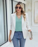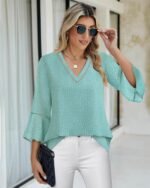 Simple and stylish V-neck shirt, whether you’re going for a fashionable office look, add bright colors to your commuting style, or going for a basic casual look, you can easily create your own fashion style.