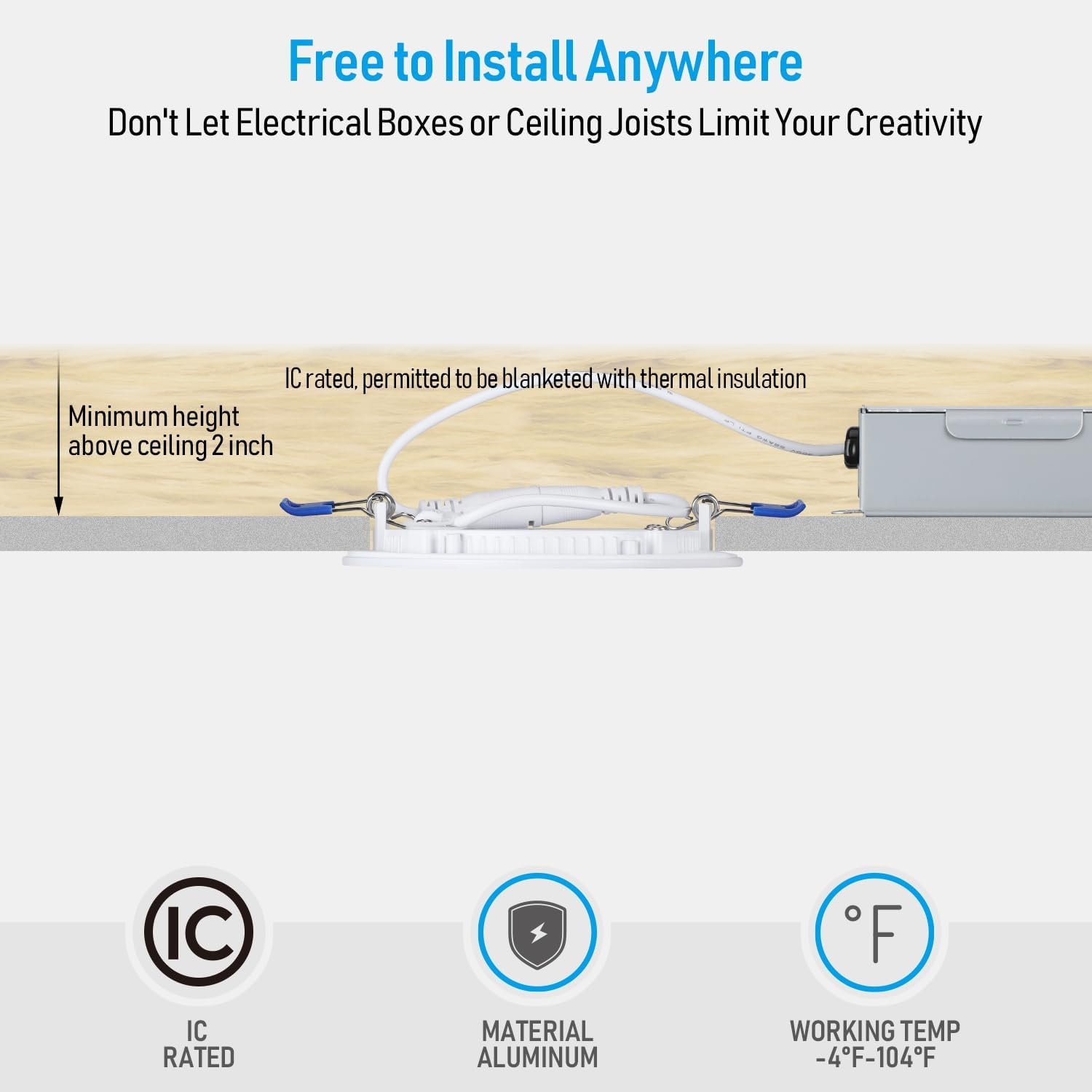 Easy to Install: The included junction box lets you install this ultra-thin downlight directly on the ceiling, eliminating the hassle of installing a housing can. The easy to follow steps makes installing it a breeze, even without the help of a professional electrician