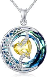 TOUPOP Mothers Day Gifts Birthstone Necklace for Women 925 Sterling Silver Moon and Star Pendant Celtic Moon Crystal Jewelry Anniversary Birthday Gift for Mom Wife Her Girlfriend