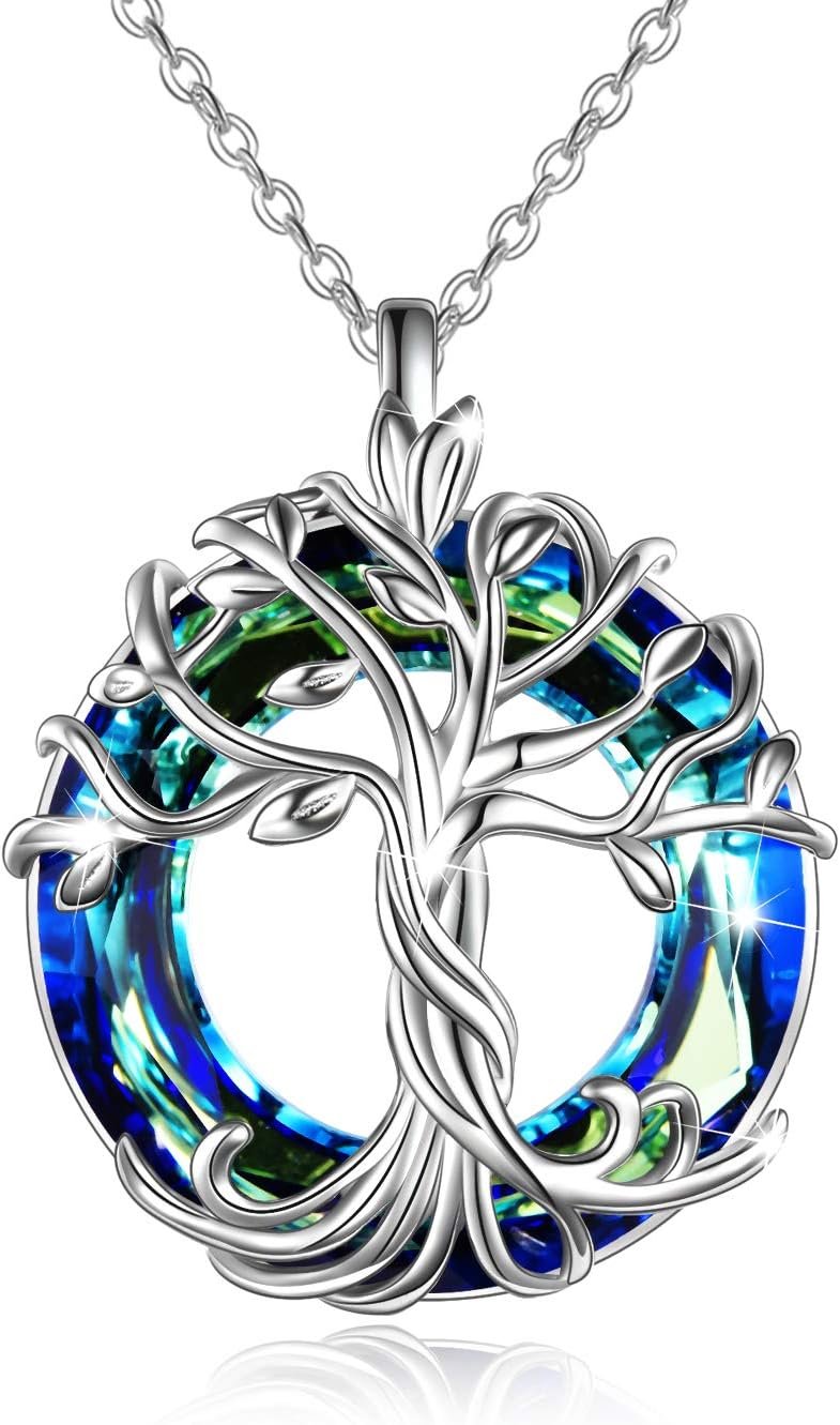 TOUPOP Tree of Life Necklace for Women 925 Sterling Silver Family Tree Austrian Crystal Jewelry Birthday Mothers Day Gifts for Mom Her