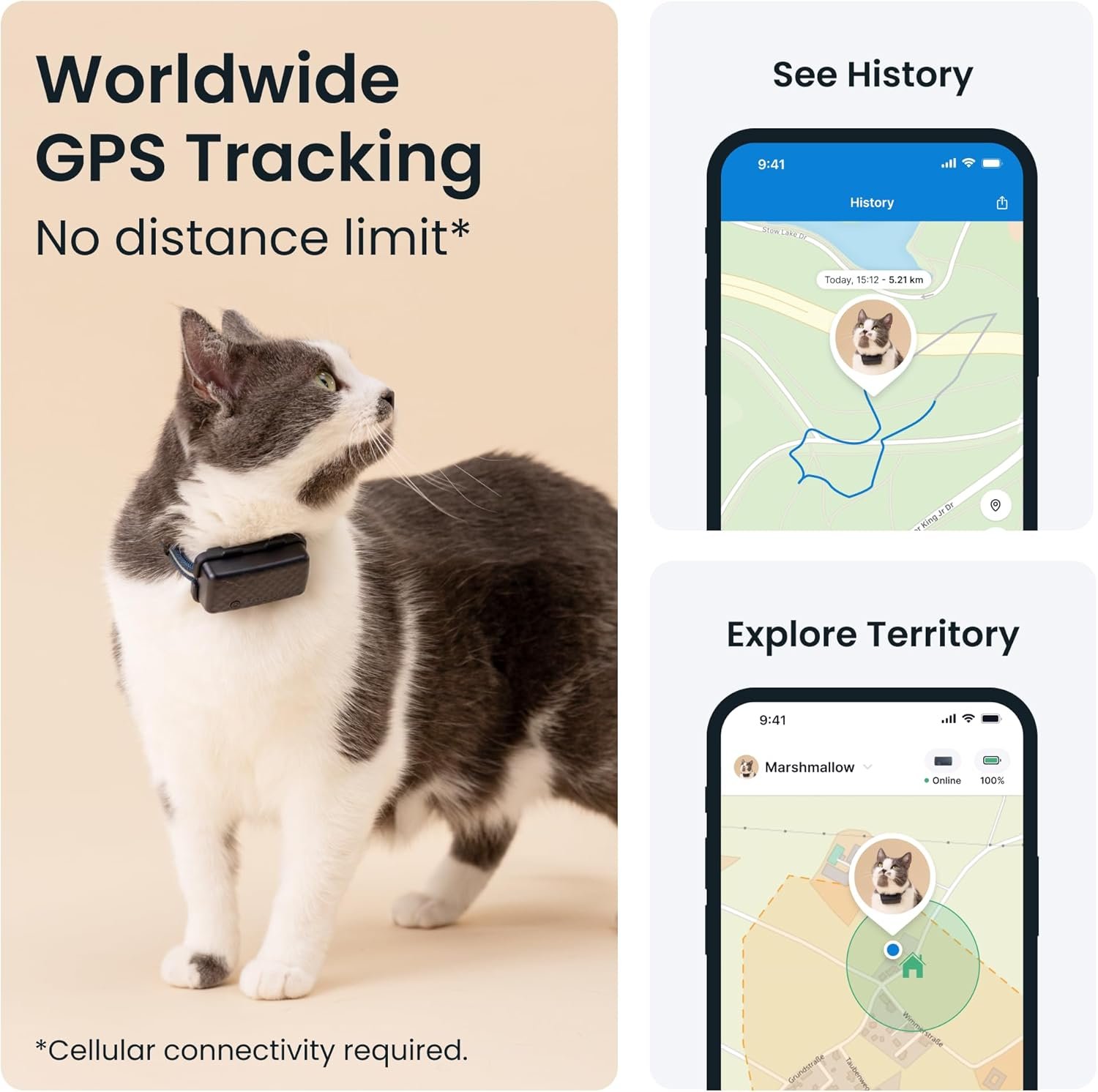 VIRTUAL FENCES & LOCATION HISTORY: Set up safe zones, receive alerts if your cat leaves the area, and use live tracking to find them. Review their location history to see where they’ve been.