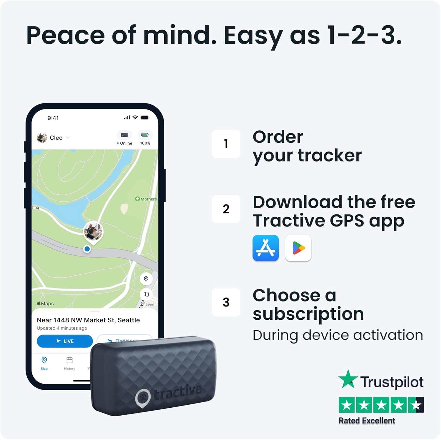Tractive GPS Cat Tracker (6.5 lbs+), Real-time Pet Location Tracker, Health & Wellness Alerts, Battery Life Up to 7 Days, Breakaway Cat Collar Included (Dark Blue)