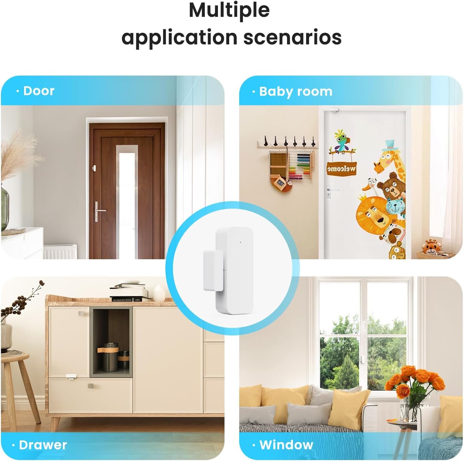 Multiple Application Scenarios: You can install the contact sensor on the front doors, garage doors, windows, mailboxes, safes, cabinets, and more. Watch the security barrier at the top of the stairs or in your child’s room. The smart window sensor can control other Tuya smart connected devices as the status of the door or window changes. For example, automatically turn on your smart lights when door is opened