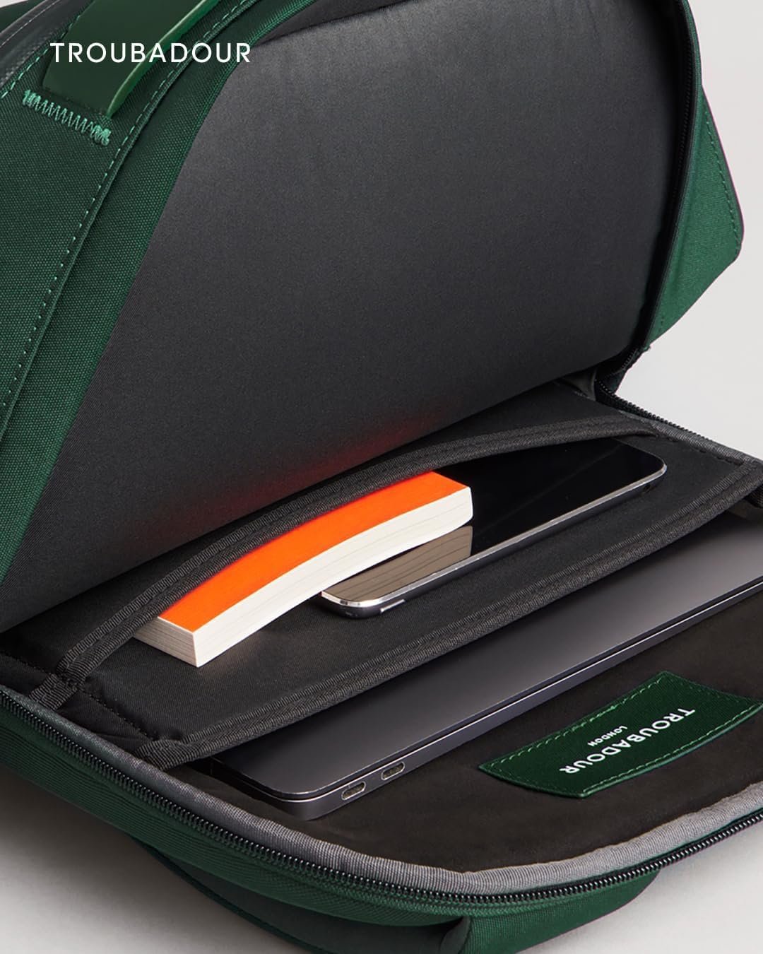 Troubadour Apex Compact Backpack 3.0 – Ultimate Work & Travel Laptop Backpack – 15″ Padded Laptop Pocket – Waterproof, Lightweight, Spacious – Innovative Pockets – Made From Recycled Materials – Green