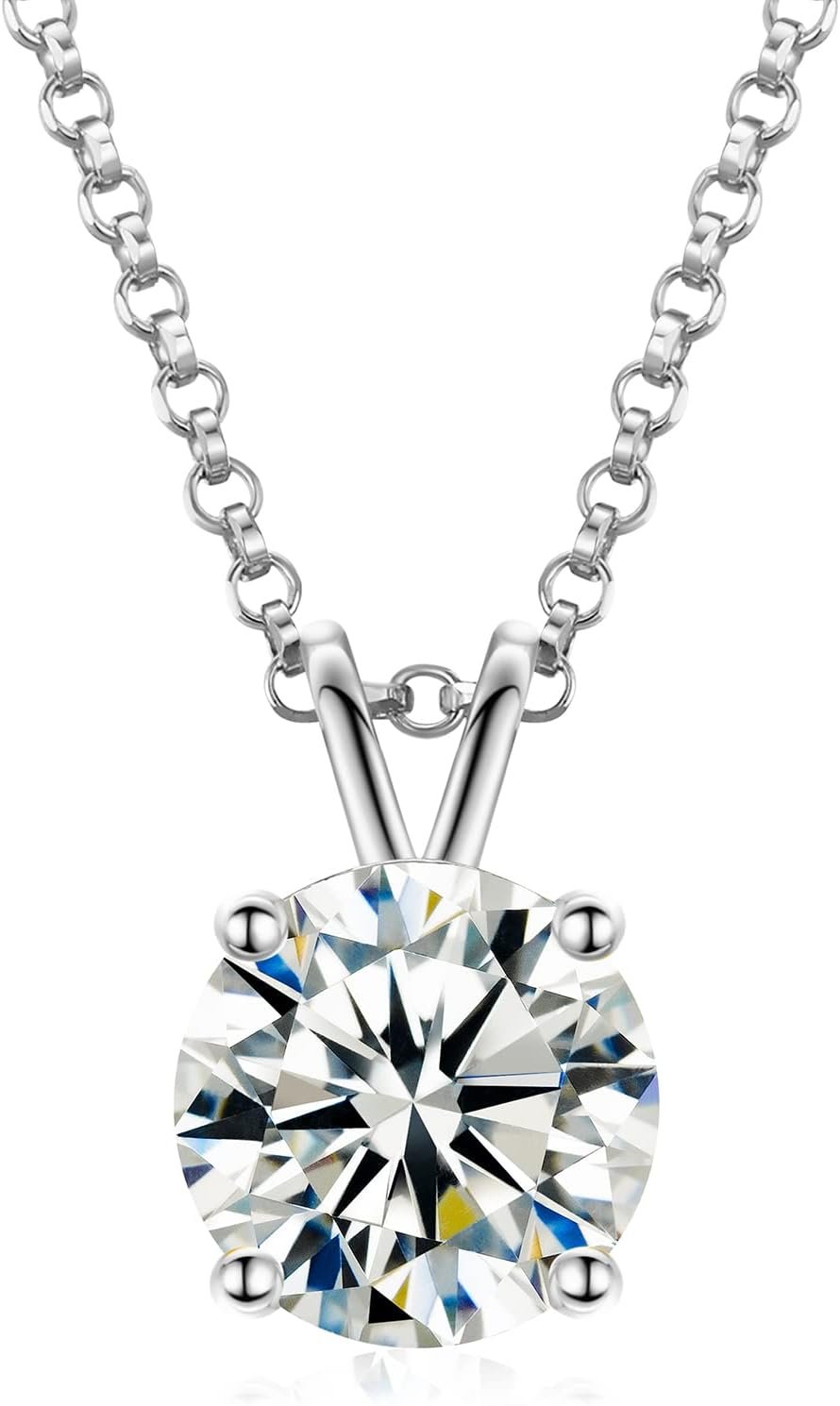 TUHE Moissanite Necklace for Women 0.1-12.0CT(3-15mm) Moissanite Pendant 18k Gold Plated Sterling Silver Necklace Round Solitaire Pendant with 18+2 Inch Chain Jewelry for Mom/Wife Mothers Day Gift