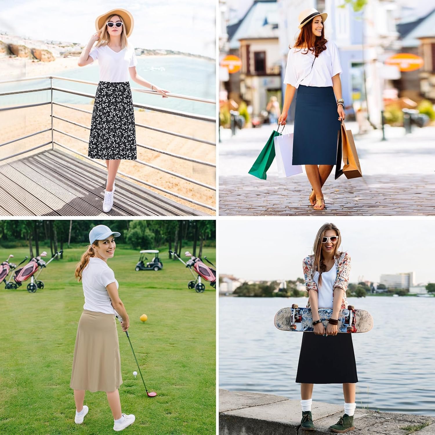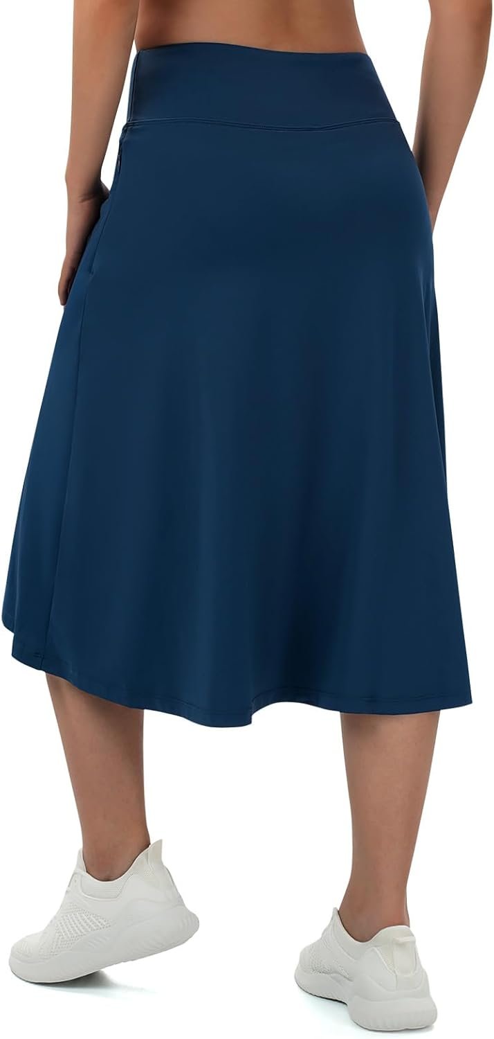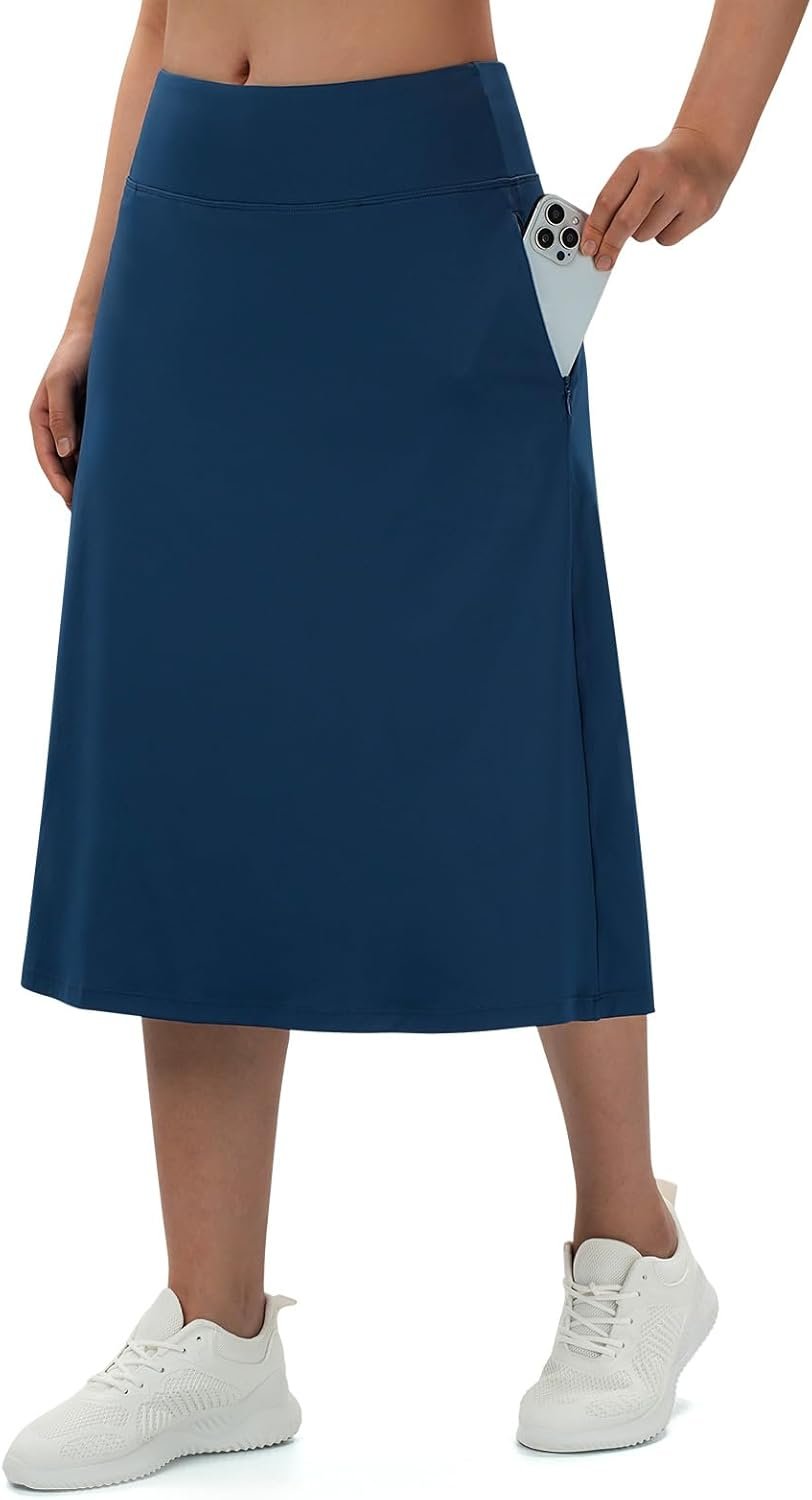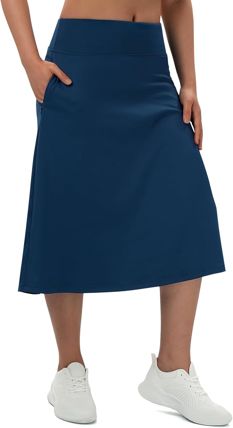Turnhier Women’s Midi Length Skorts Skirts with 2 Pockets Modest Long Skirts 28″ Knee Length Athletic Skort