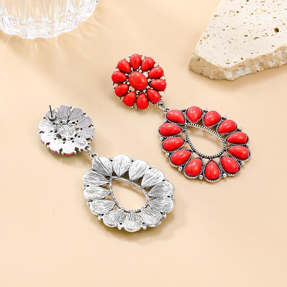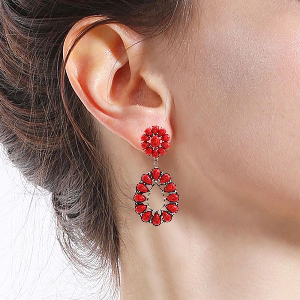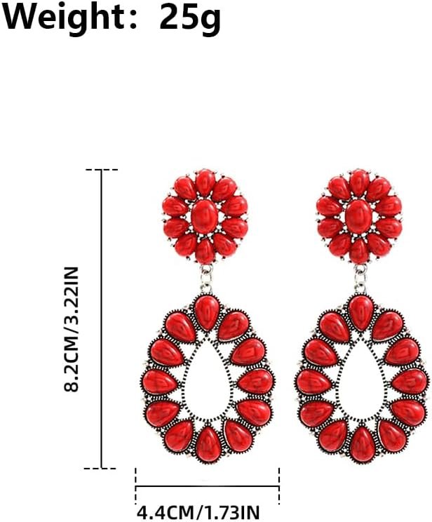 Turquoise Teardrop Flower Statement Earrings for Women,Boho Floral Waterdrop Shape Turquoise Earrings Party Prom Western Trendy Jewelry Gifts