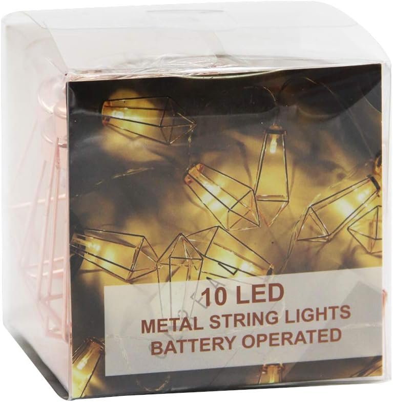 Twinkle Star 10 LED 6.6 ft Diamond String Lights Battery Operated, Geometric String Lights Warm White, Rose Gold Metal Lamps Decor for Indoor Wedding Party Bedroom Christmas