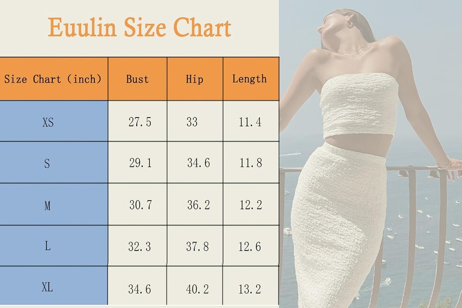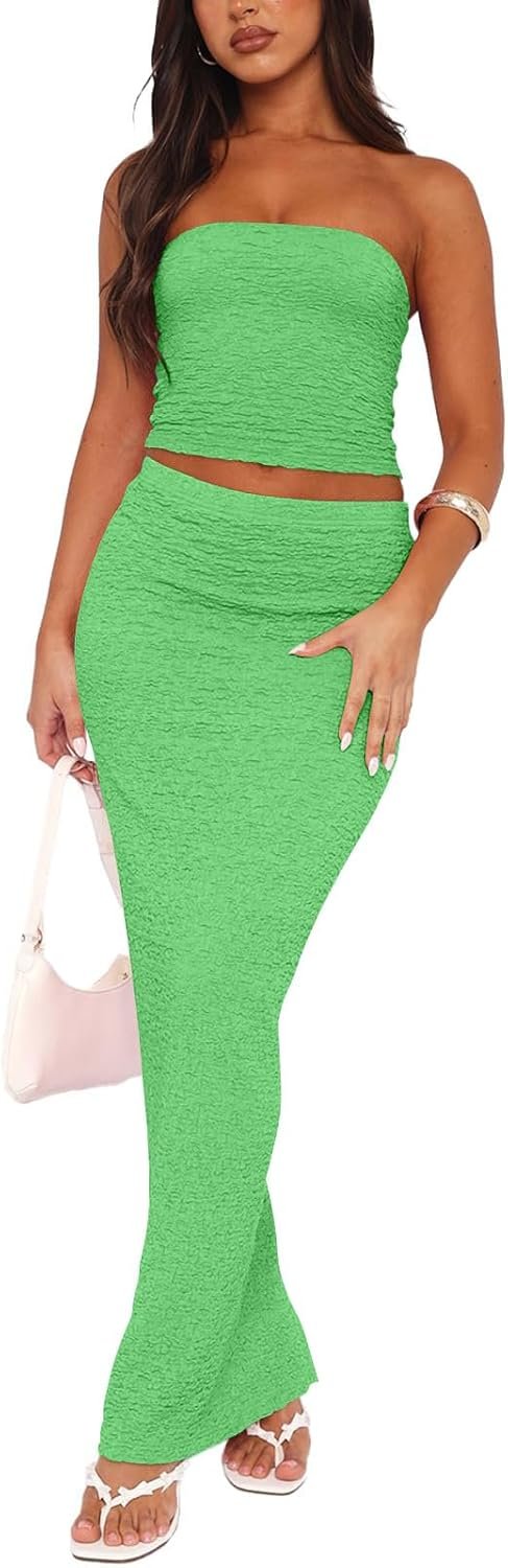 Euulin Two Piece Dress Outfits for Women Sleeveless Tube Tops Bodycon Maxi Dress Summer Strapless Crop Top Sexy Suits Set