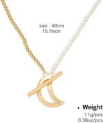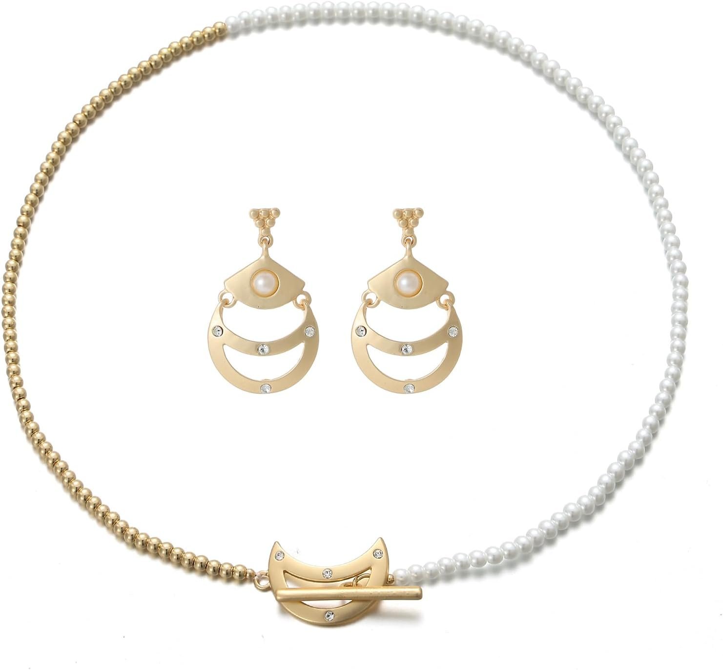 Two-Tone Bead OT Clasp Necklace and Sterling Silver Post Dangle Drop Earrings,Crescent Shapes,Elegant Jewelry Set Gift for Women