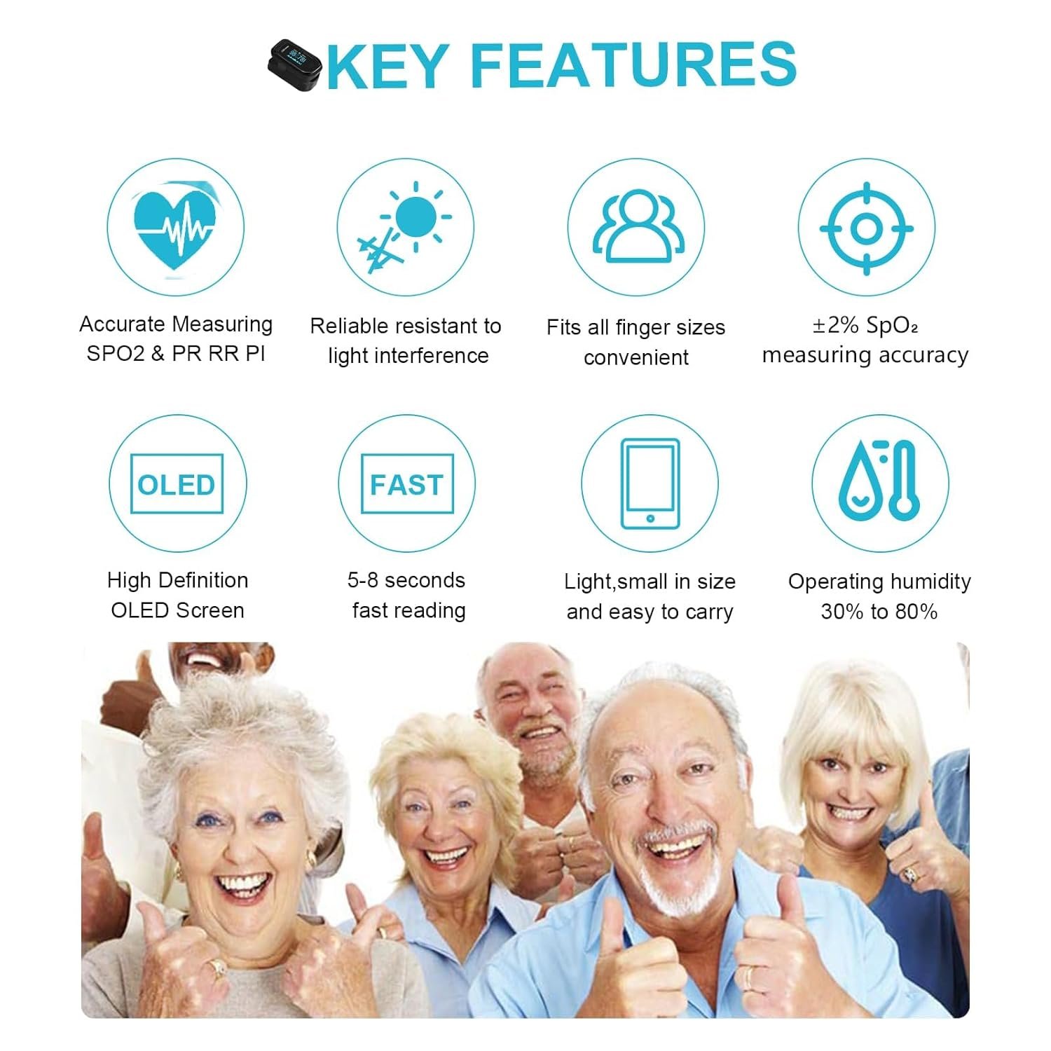【Focus on Training & Health Indicators】 A blood oxygen monitor finger is a great option for a present. Pulse ox can monitor physical health indicators for elderly parents at home. Oximetro can also be given as a gift to friends, using the pulse oximeter with respiration reading function for post exercise monitoring such as swimming, running, and cycling.