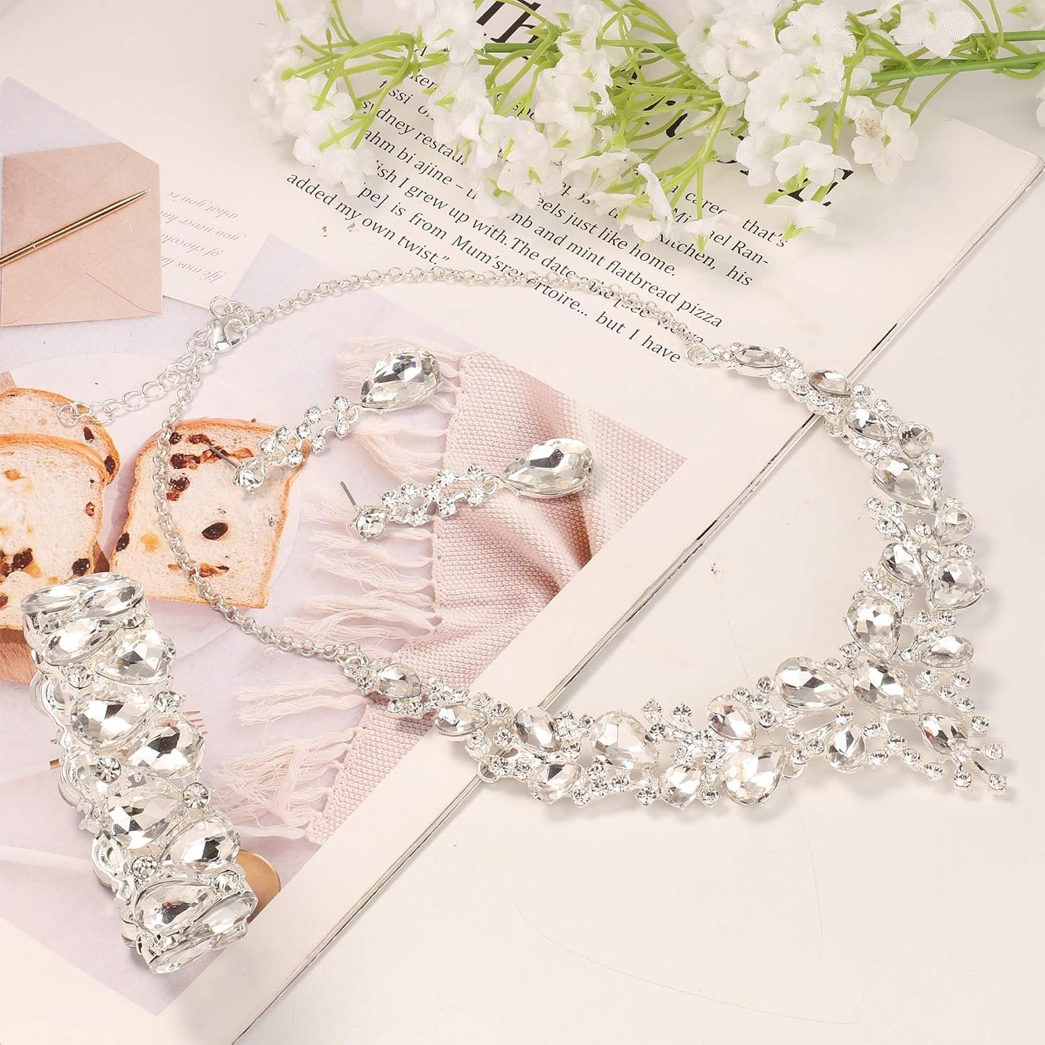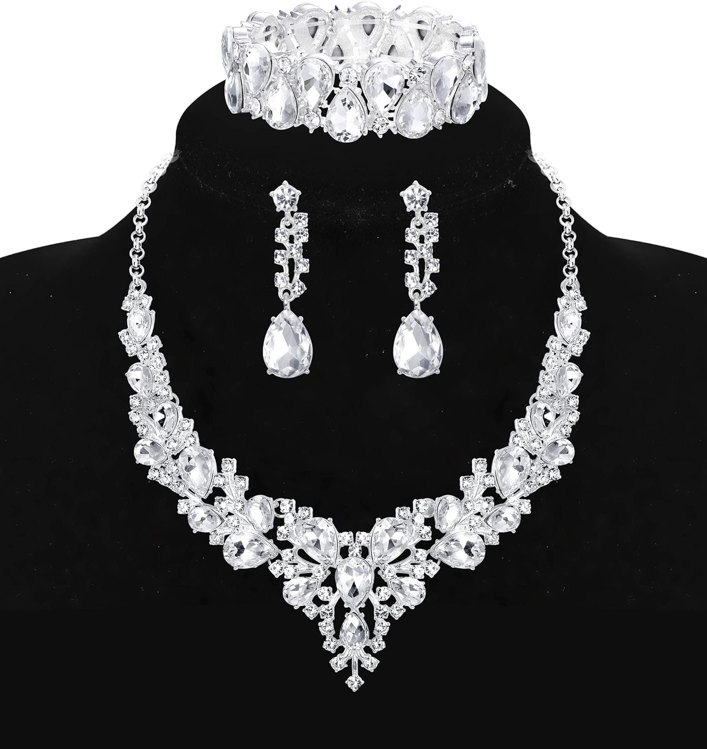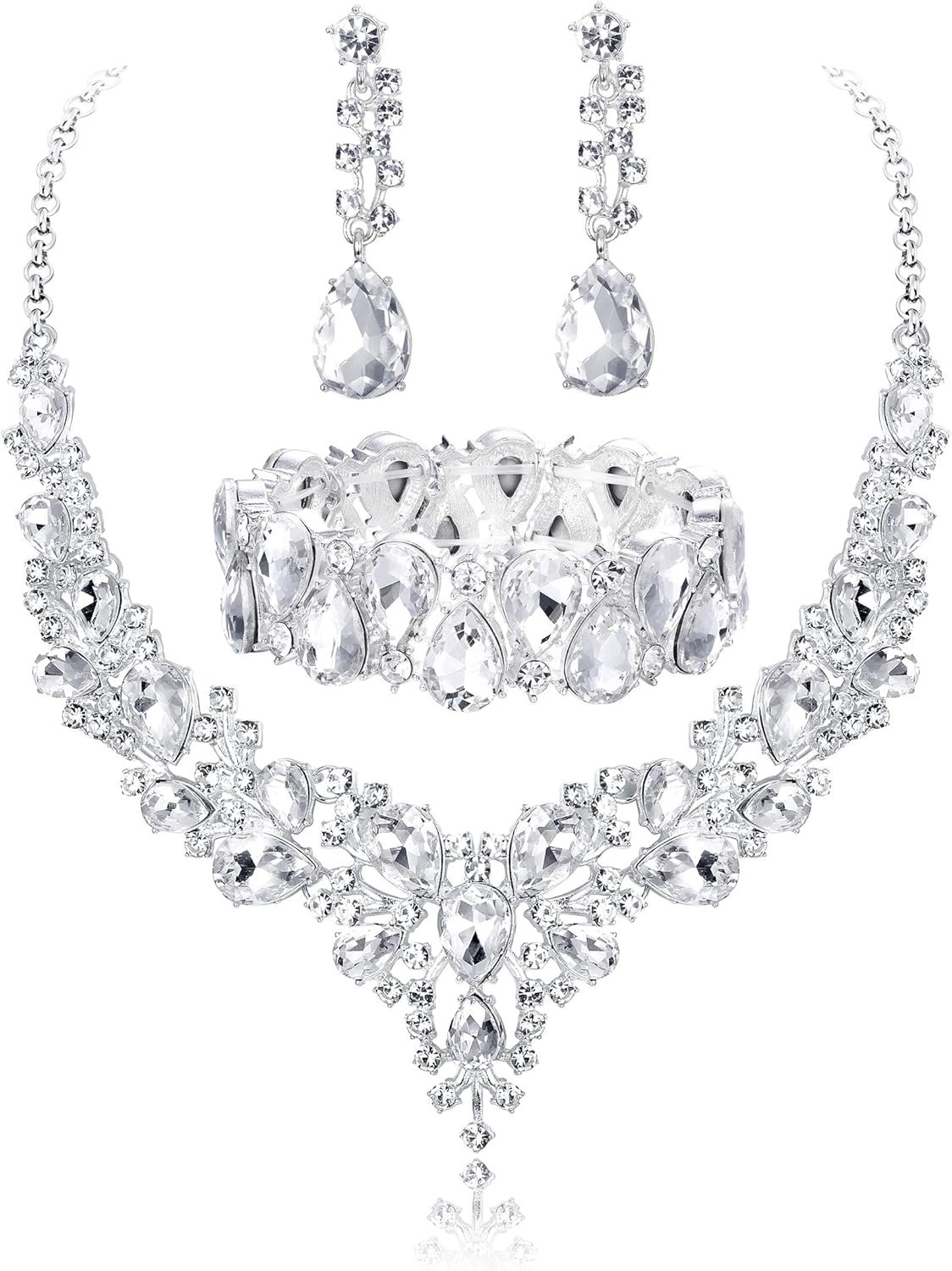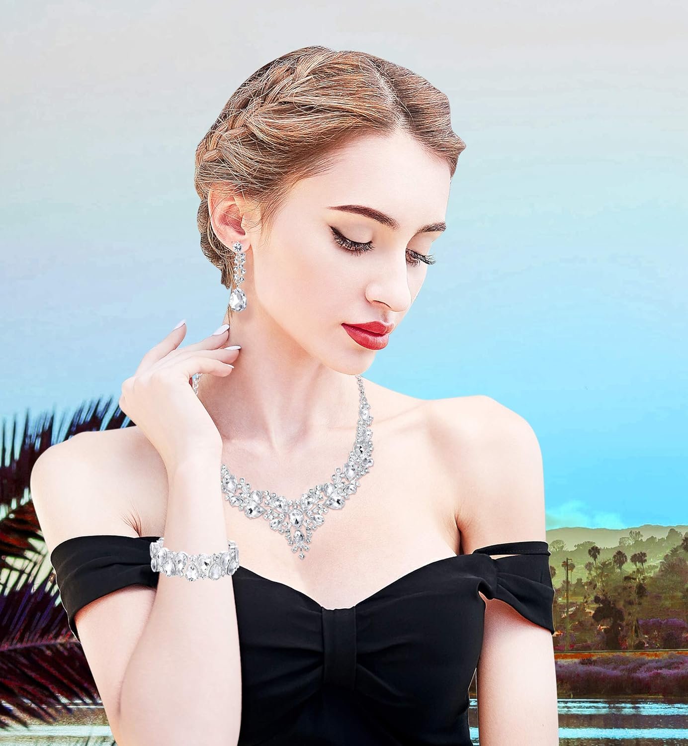 Udalyn Crystal Bridal Jewelry Sets for Women Necklace Earrings Bracelet Set for Wedding Rhinestone Bridesmaid Choices fit with Wedding Dress