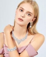Customers find the jewelry set attractive with clear crystal-like stones that catch the light nicely. They find it functional and well-made, suitable for formal events like red carpets. The size is considered decent, fitting most people comfortably. However, some customers have differing views on the quality, value for money, and weight of the set.