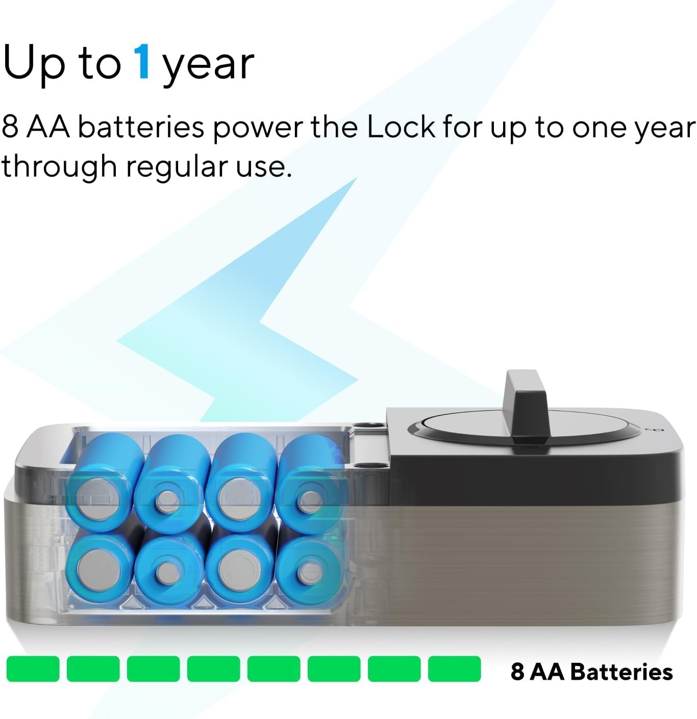 【Stable and Secure with Long Battery Life】8 AA batteries power the Bolt Fingerprint front door lock for up to one year through regular use. Highest Commercial Level ANSI/BHMA Grade 1 Certified. Proven for up to 35 times strength of standard residential locks along with a 7 times longer lifespan. IP65 rated dust and weatherproof external Smart Lock built to withstand heat and cold.