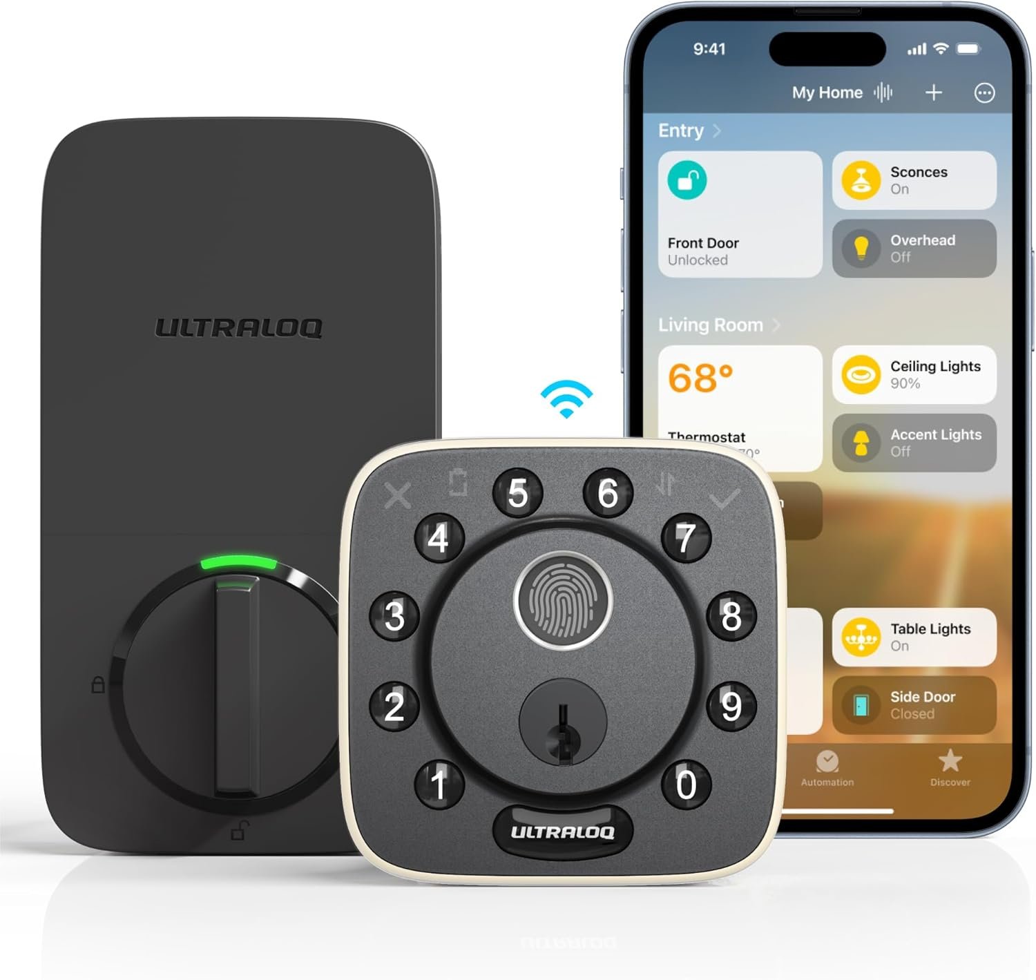 ULTRALOQ Bolt Fingerprint Smart Lock,Works with Apple HomeKit, Built-in WiFi Keyless Entry Door Lock, Voice Control with Siri, Alexa, Google, Smart WiFi Deadbolt, Support Apple Home Automation