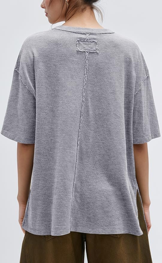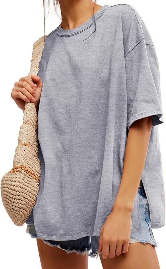 UNCLECAT Womens Oversized T Shirts Summer Trendy Short Sleeve Crew Neck Tops Loose Fit Side Slit Tee