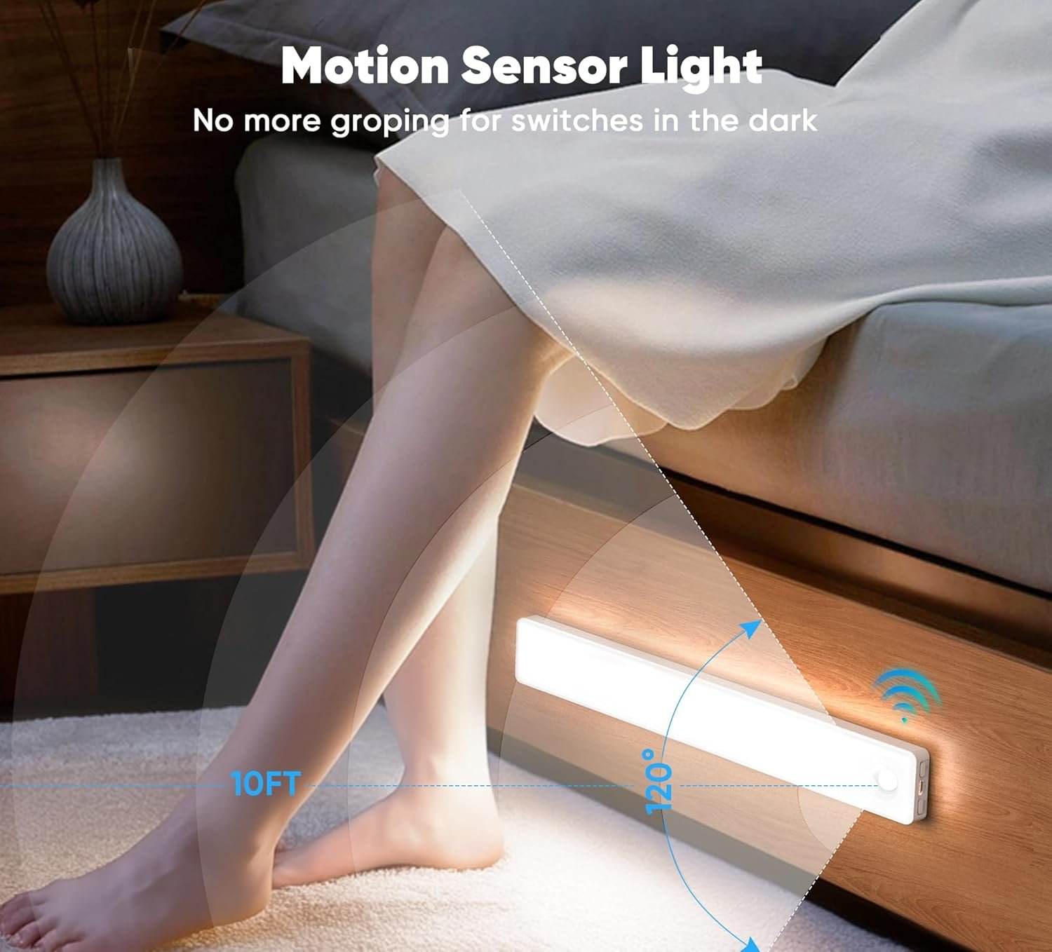 Under Cabinet Lighting, 2 Pack Motion Sensor Light Indoor, Rechargeable Closet Lights Battery Operated, LED Lights for Bedroom, Wireless Dimmable Cabinet Lights, Motion Sensor Step Night Light