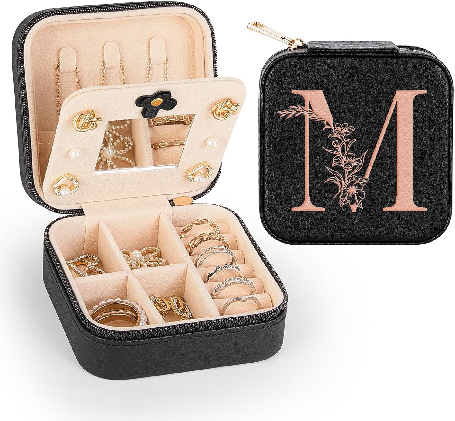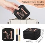 Unique Letter Design : Our travel jewelry case features a classic and elegant black box adorned with rose gold letters, featuring the fashion style of the jewelry organizer; The distinctive letter design reflects your personality, making it a stylish accessory for woman