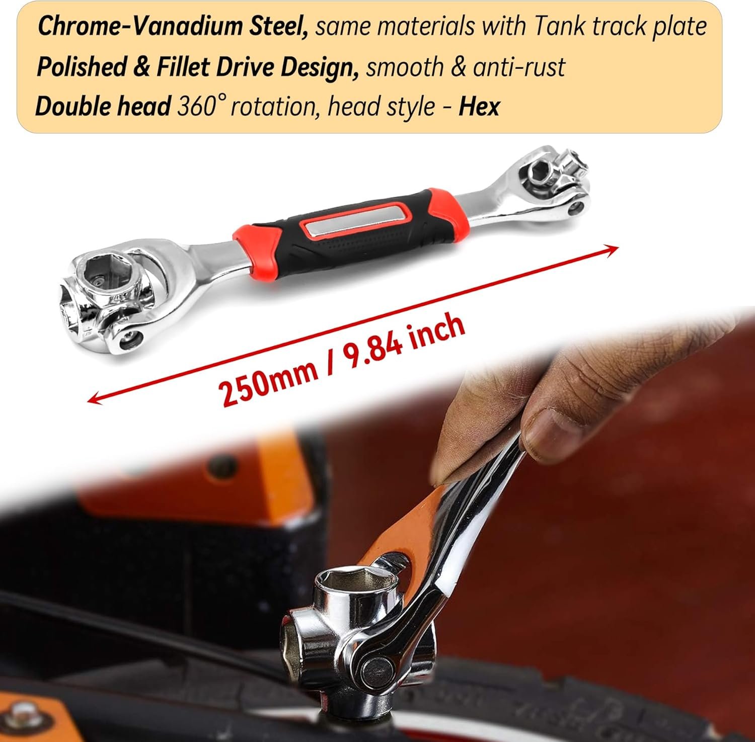 【8 Tools in One Socket Tiger Wrench】The Unique Socket Wrenches Tooth Design Allows You to Deal With Both Standard And Metric Sizes, Only Simply Flip The Tool Around and You Have More Sizes! No More Lugging Around Heavy Tool Boxes or Carries A Full Row of Wrenches. It’s A Perfect Wrench Tool to Be Taking On A Bike or Car.