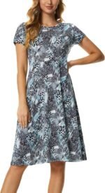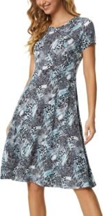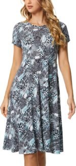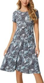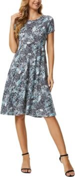 Urban CoCo Women’s Vintage Short Sleeve High Waist Flared Midi Casual Summer Dress
