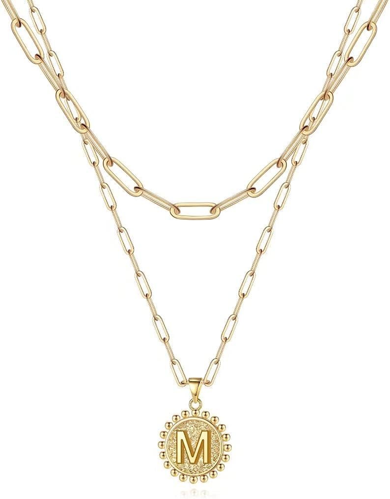 Ursteel Layered Initial Necklaces for Women – 14K Gold Plated Dainty Layering Paperclip Chain Necklaces for Women Jewelry