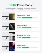 Multi-Device Charging Solution: Universal compatibility for all your charging needs with USB-A, USB-C, Fast-charging connectors and power adaptor adaptability. For example, iPhone 16/16 Plus/16 Pro/16 Pro Max/iPhone 15/15 Plus/15 Pro/15 Pro Max/iPhone 14/14 Plus/14 Pro/14 Pro Max/iPhone 13/13 Mini/13 Pro/13 Pro Max/iPhone 12/12 Mini/12 Pro/12 Pro Max/iPhone 11/SE Series; iPad Pro/Air/Mini; MacBook Pro 14″/MacBook Pro 16″/MacBook Air/MacBook Pro 13″; AirPods Series; Apple Watch Series; Galaxy S22/S22+/S22 Ultra/S21/S21+/S21 Ultra/S20/Note20; Switch, etc.