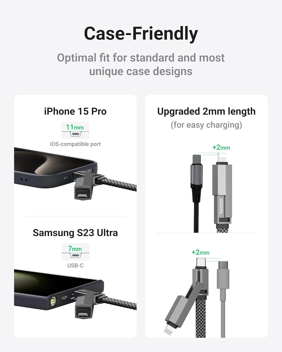 Versatile 4-in-1 Design: Simplify your charging setup with our versatile 4-in-1 usb-c cable. Charge and sync your devices without the hassle of switching between multiple cables.