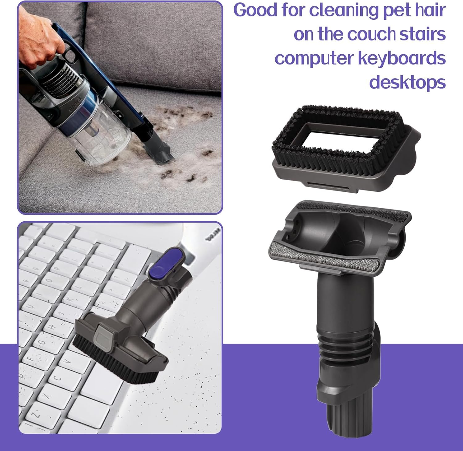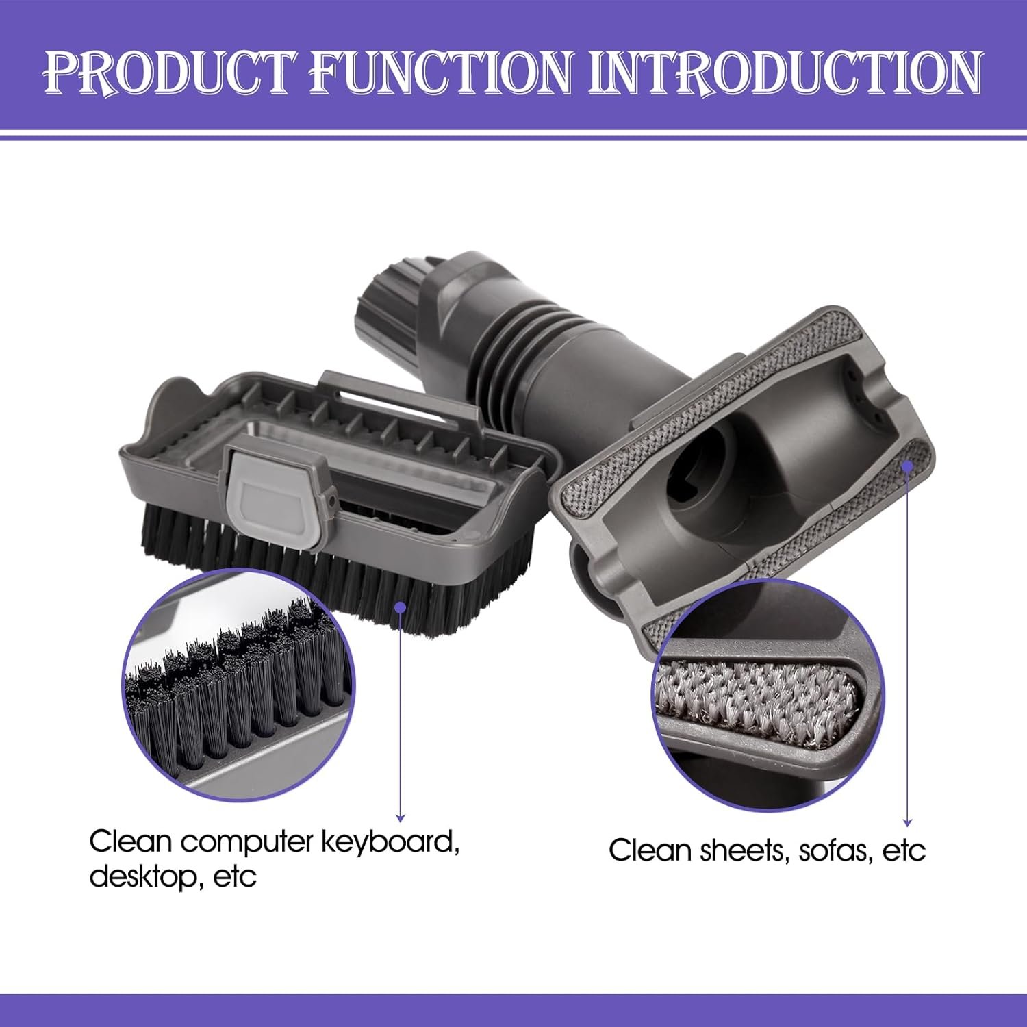 3. Easy to install, simple installation, directly inserted into the vacuum interface can be used, the two-in-one tool brush can be disassembled and used respectively, after disassembling, you can get a tool brush with electrostatic strip and a tool brush with bristles