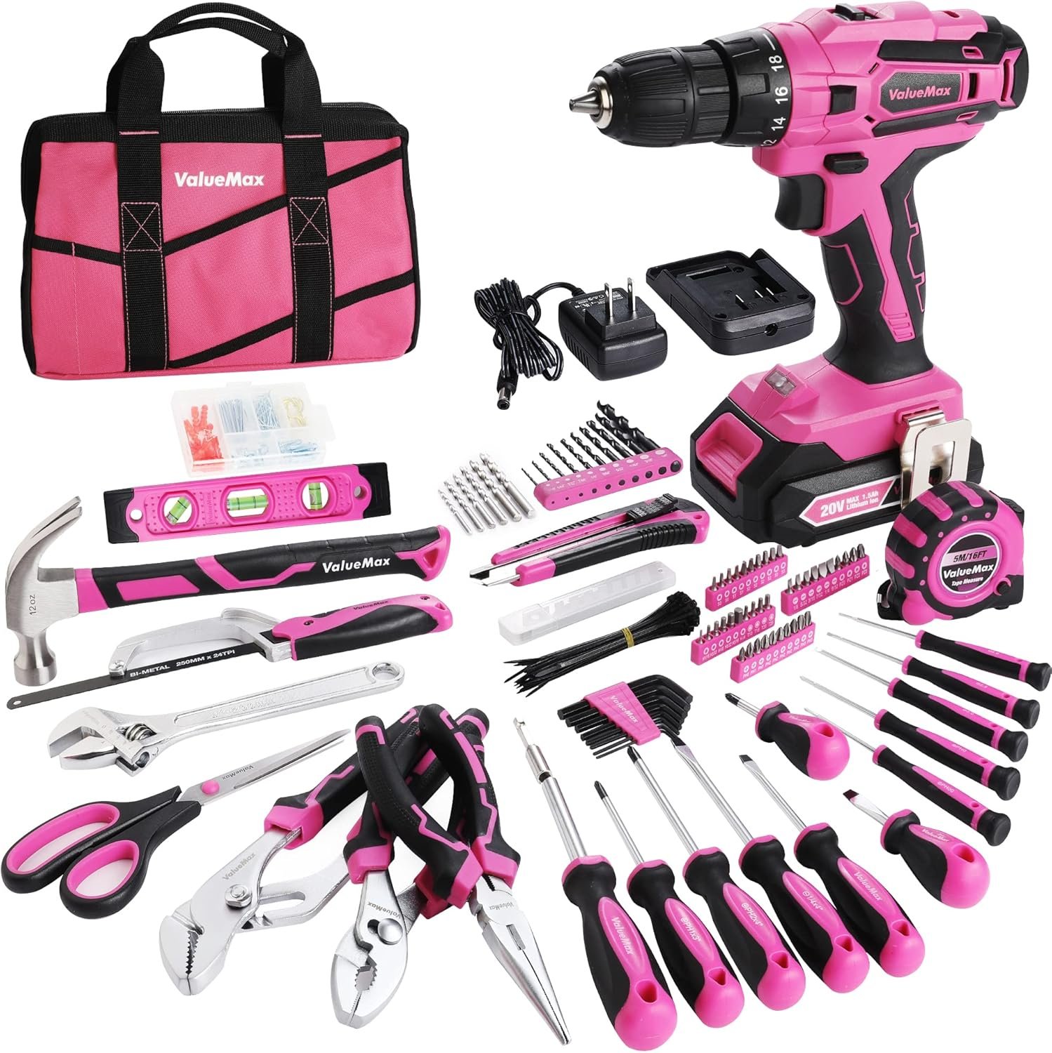 ValueMax Home Tool Kit with Drill, 238-Pieces Pink Tool Set with 20V Cordless Lithium-ion Drill, Power Tool Set with Wide Mouth Open Storage Bag, Basic Drill Sets Combo Kit for DIY and Daily Repair
