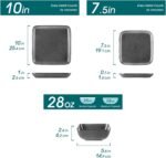 vancasso Stern Gray Dinner Set Square Reactive Glaze Tableware 12 Pieces Kitchen Dinnerware Stoneware Crockery Set with Dinner Plate, Dessert Plate, Bowl Service for 4