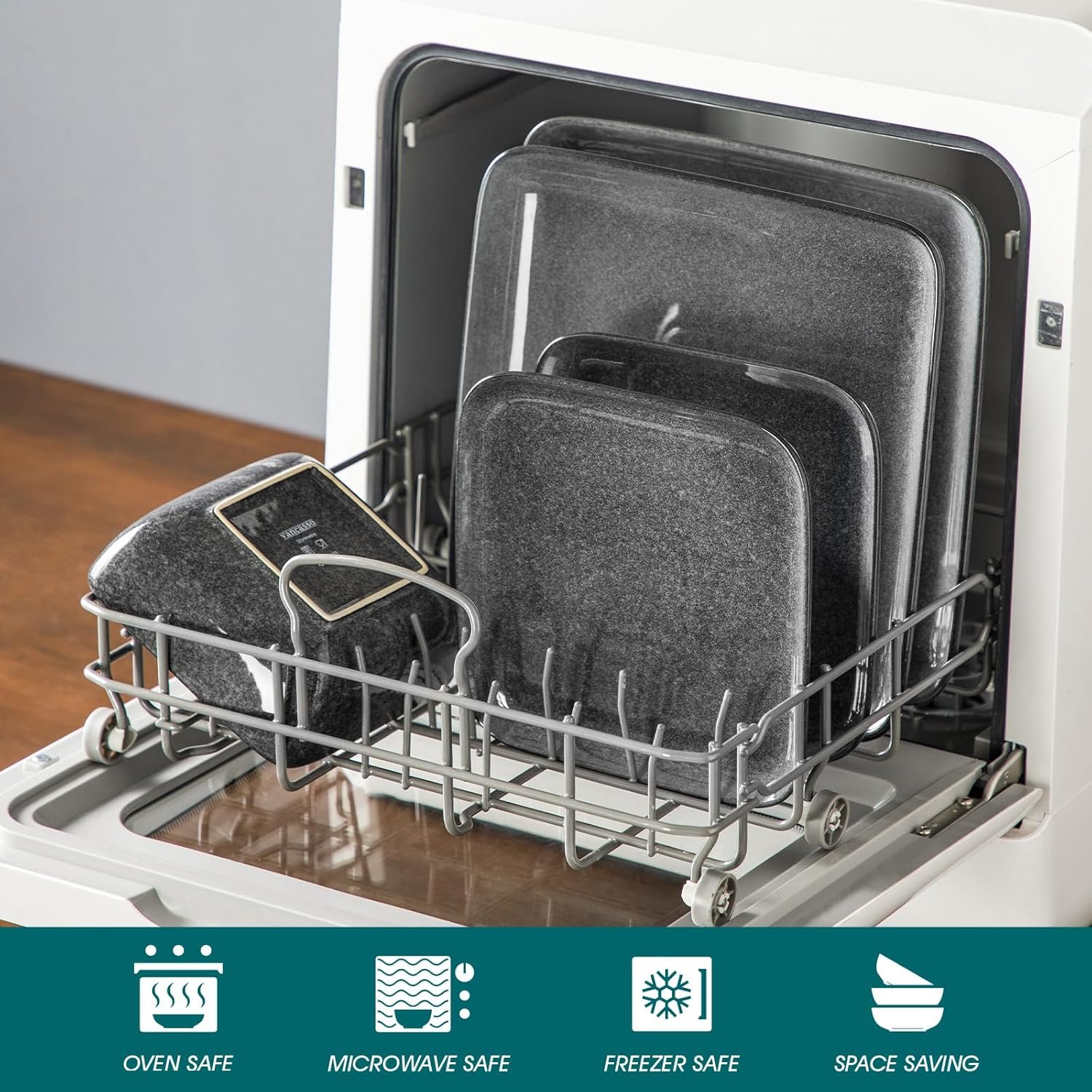 【Microwave and Dishwasher Safe】Designed for modern convenience, each piece in Stern dish set is microwave-safe and dishwasher-safe. Reheat leftovers or warm up dishes with ease, and after mealtime, simply place them in the dishwasher for quick and effortless cleanup. This practical feature makes the set ideal for everyday use.