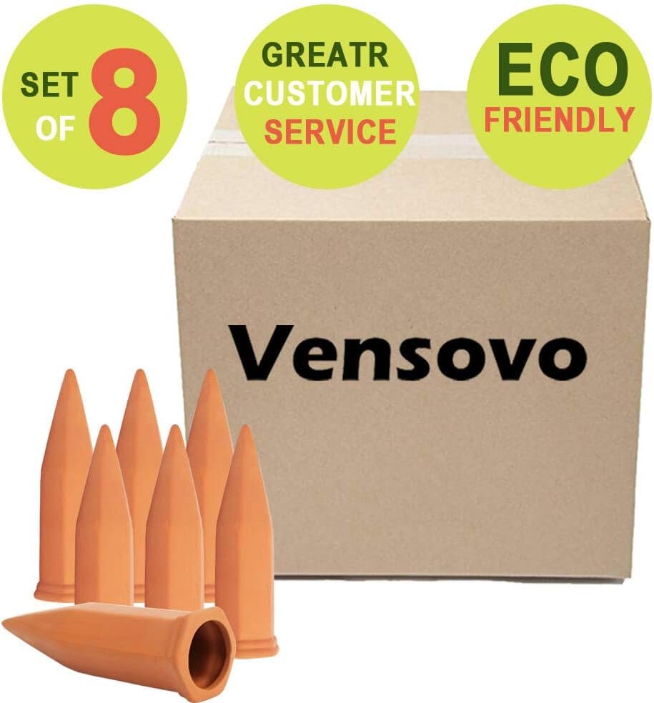 vensovo 8pcs Terracotta Watering Spikes – Automatic Self Watering Stakes, Plant Watering Devices for Wine Bottles Recycled Bottles, Clay Plant Garden Waterers for Vacations