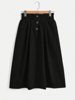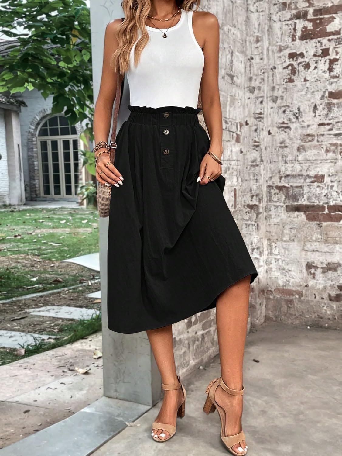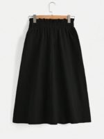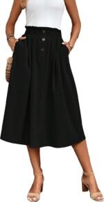 Verdusa Women’s Elastic Waist Pocket Side A Line Midi Swing Flared Skirt