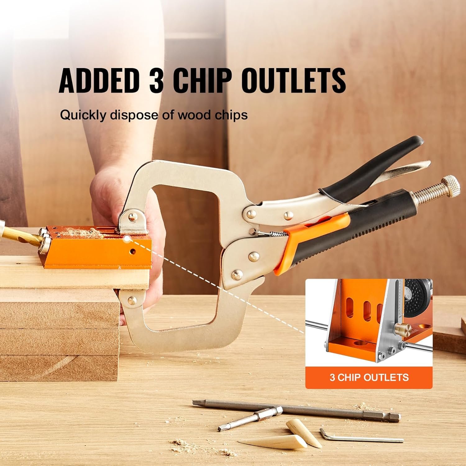 Our pocket jig includes 3 wood chip outlets that ensure easy removal of wood chips through vibration during drilling, effectively preventing clogs. Your operations stay clean and smooth, ensuring uninterrupted productivity.