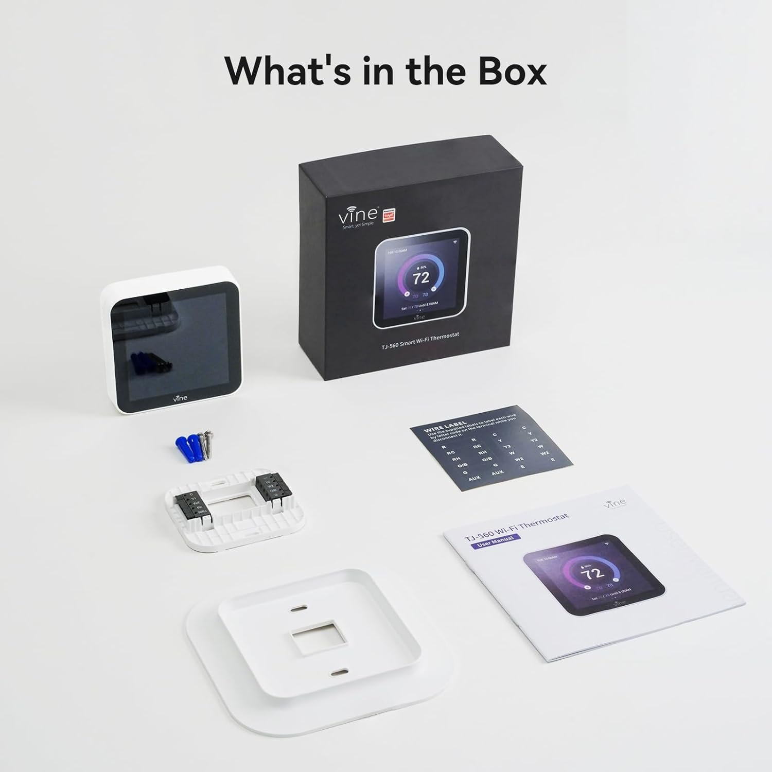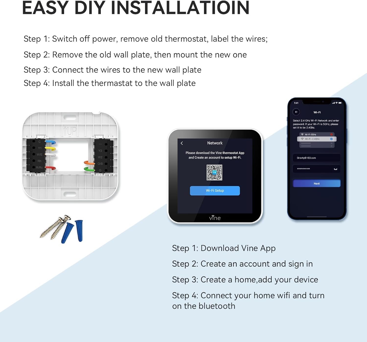 vine Smart Thermostat Larger Color Screen Thermostats for Home Heat and AC, 7 Day Programmable WiFi Thermostat App Control Compatible with Alexa and Google Assistant, C-Wire Required