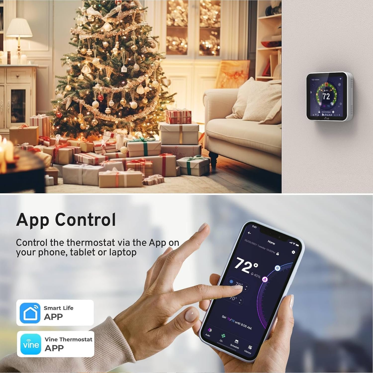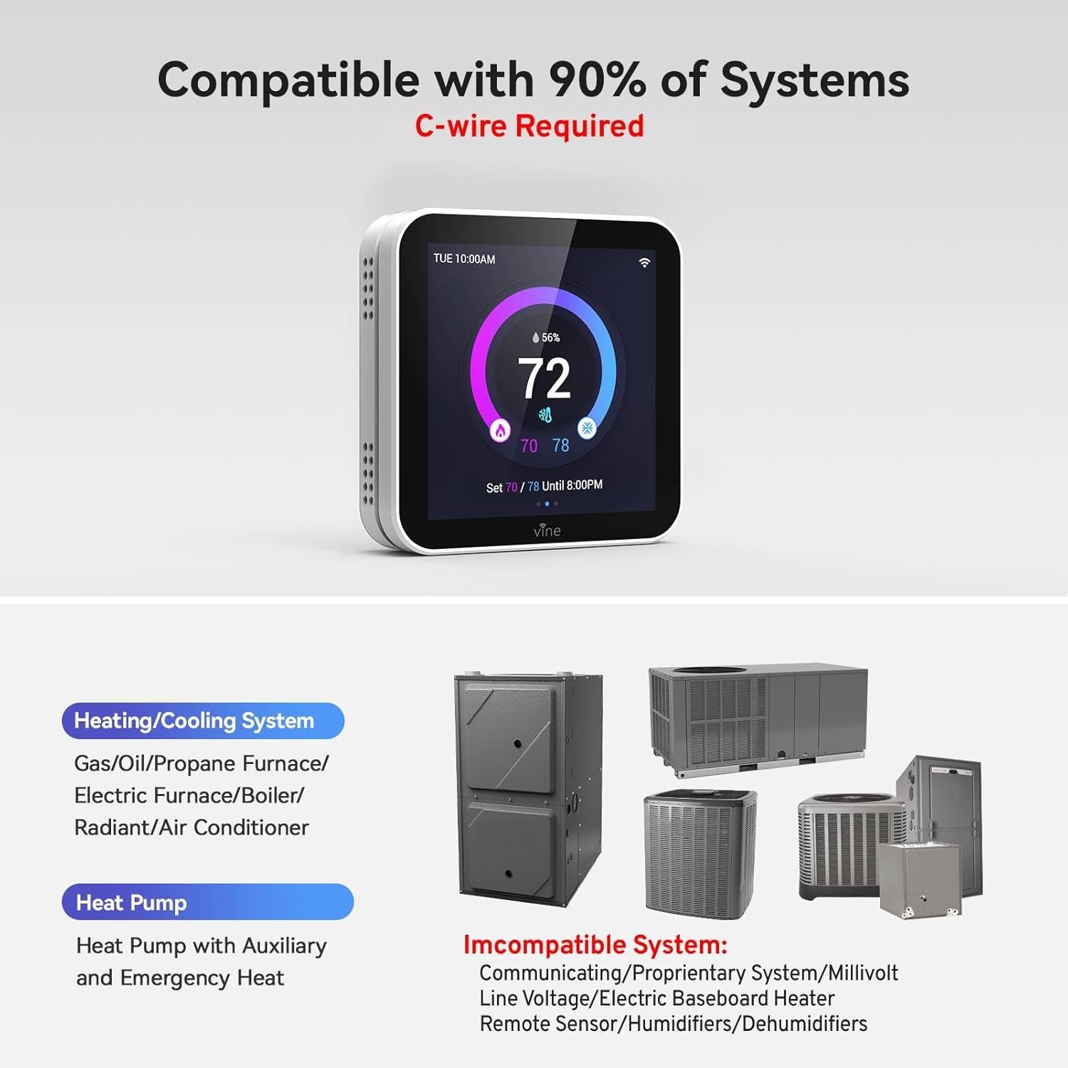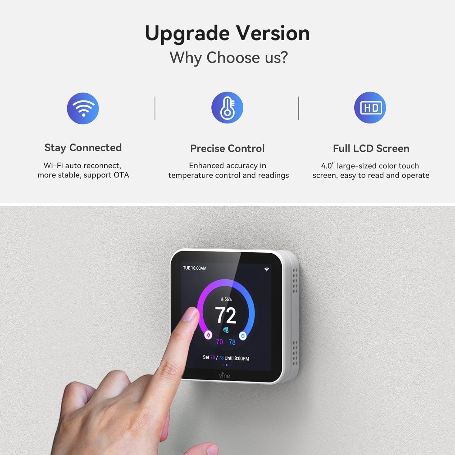 vine Smart Thermostats for Home, 7 Day Programmable WiFi Thermostat for House, 4.0″ Touch Color Screen, App/Voice Control, Compatible with Alexa & Google Assistant, C-Wire Required