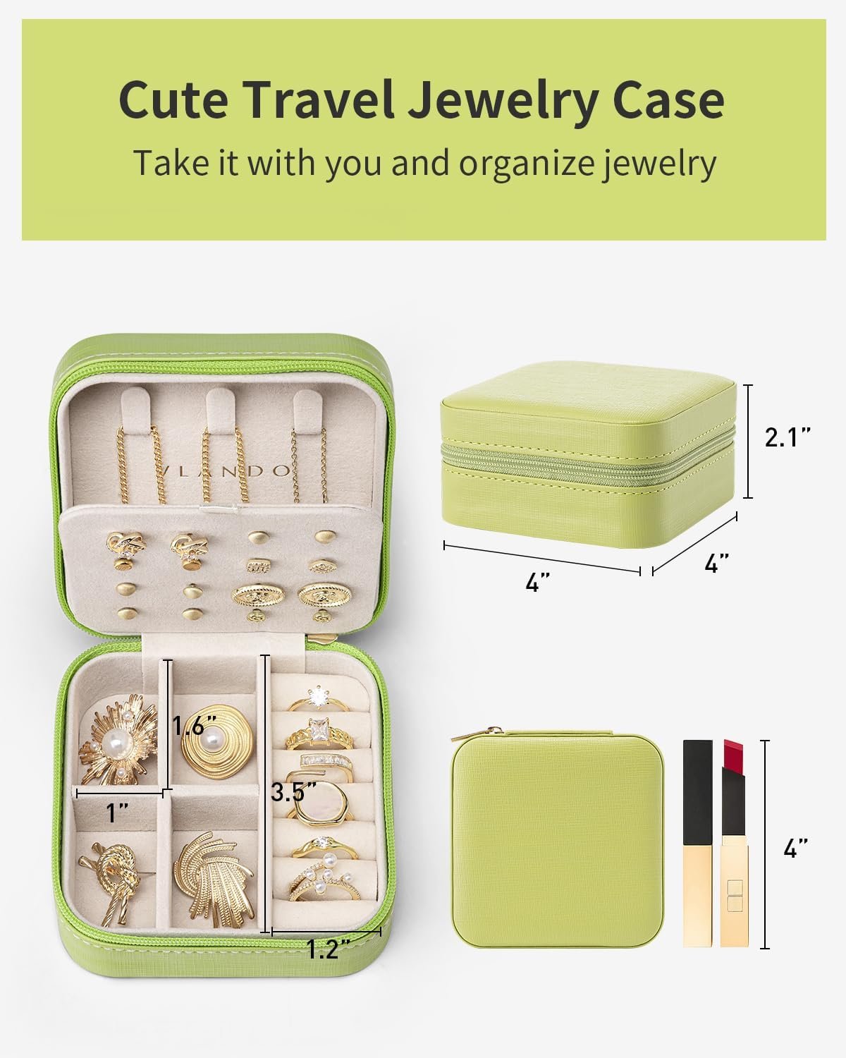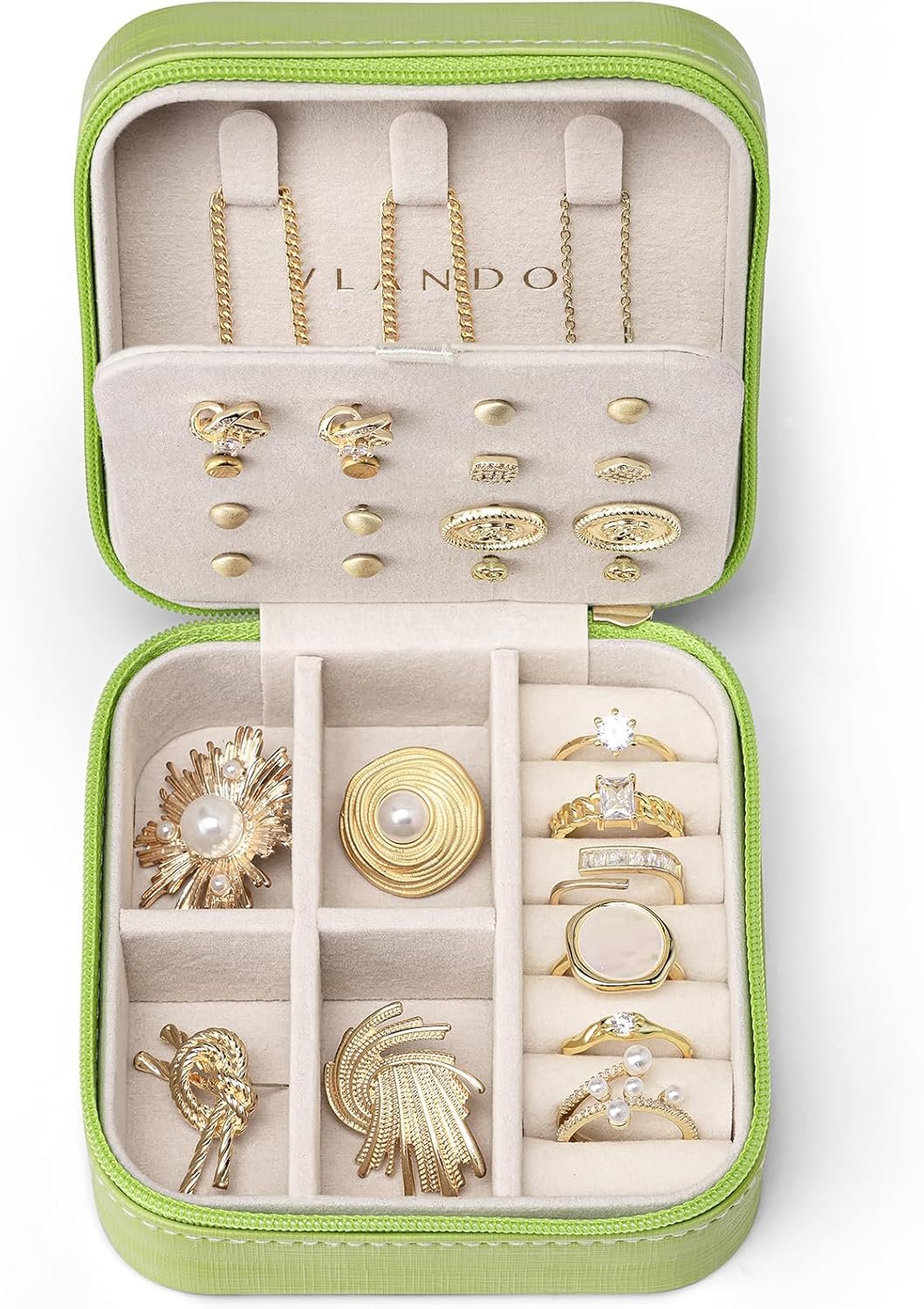Vlando Travel Jewelry Case, Small Travel Jewelry Organizer Box for Girls Women – Green