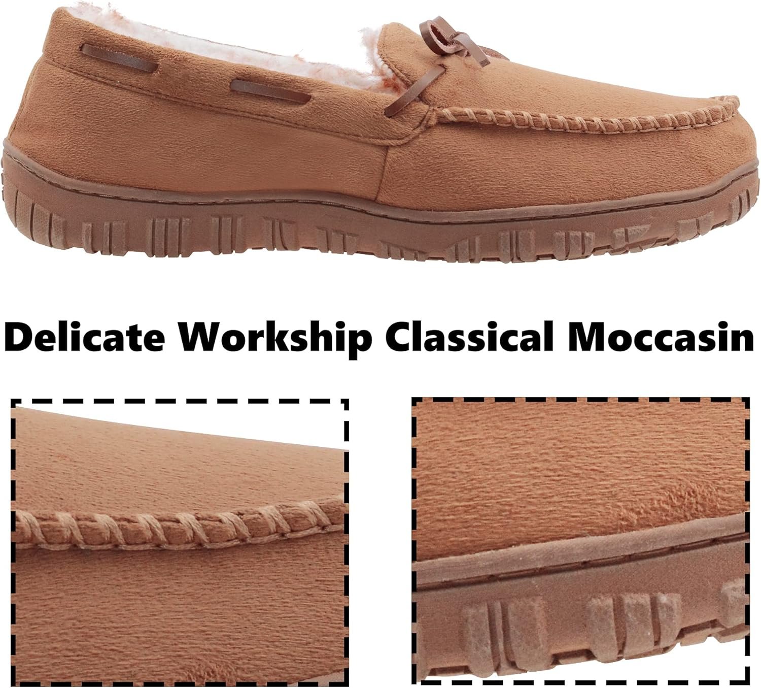 VLLy Mens Slippers Moccasins with Plush Lined Cozy House Bedroom Shoes for Men