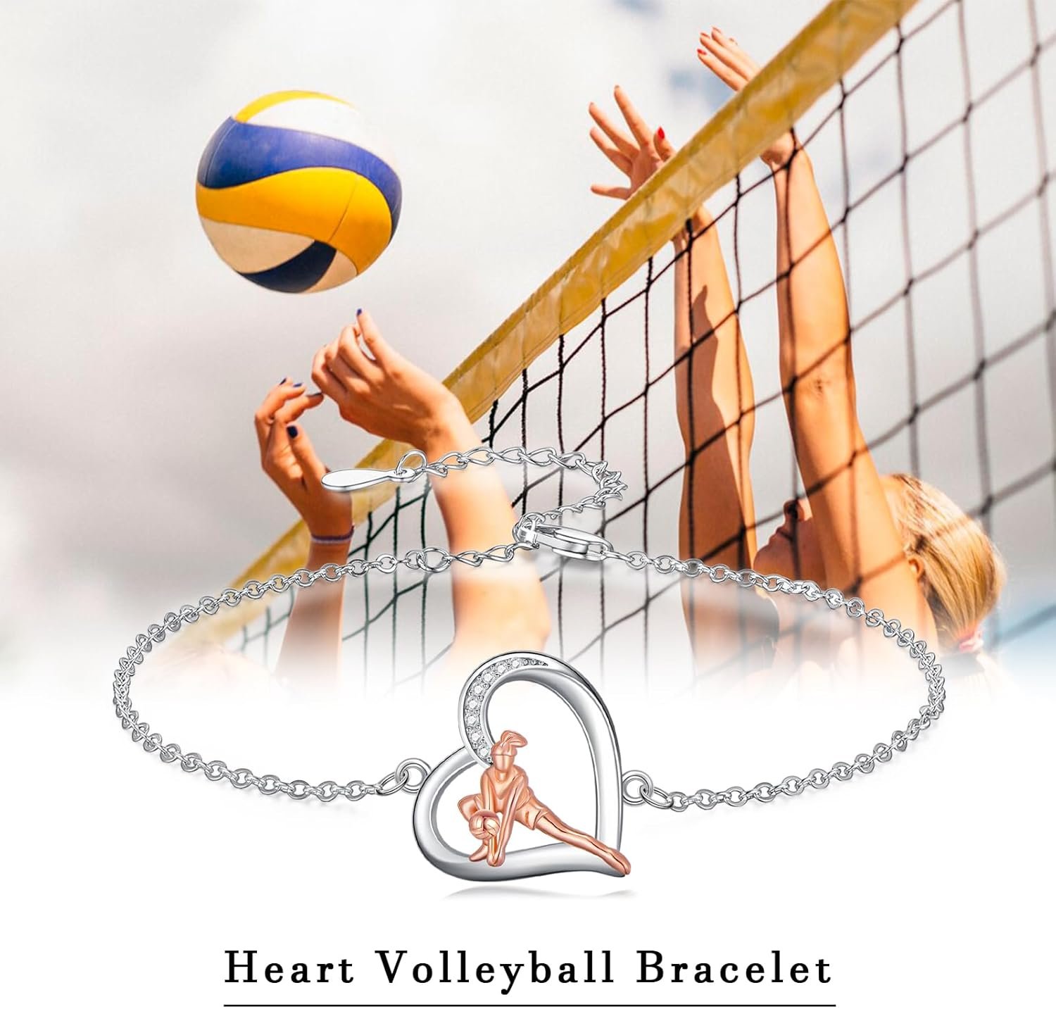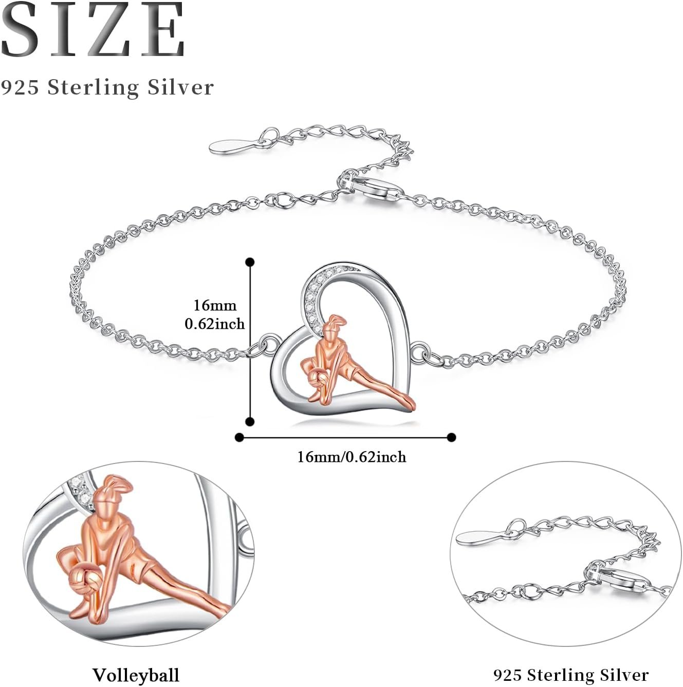 Volleyball/Tennis/Golf Bracelet 925 Sterling Sliver Heart Sports Bracelets Jewelry Gifts for Women Mom Lover Player