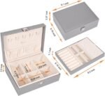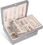 Voova Jewelry Box Organizer for Women Girls, 2 Layer Large Men Storage Case, PU Leather Display Jewellery Holder with Removable Tray for Necklace Earrings Rings Bracelets, Vintage Gift,Grey