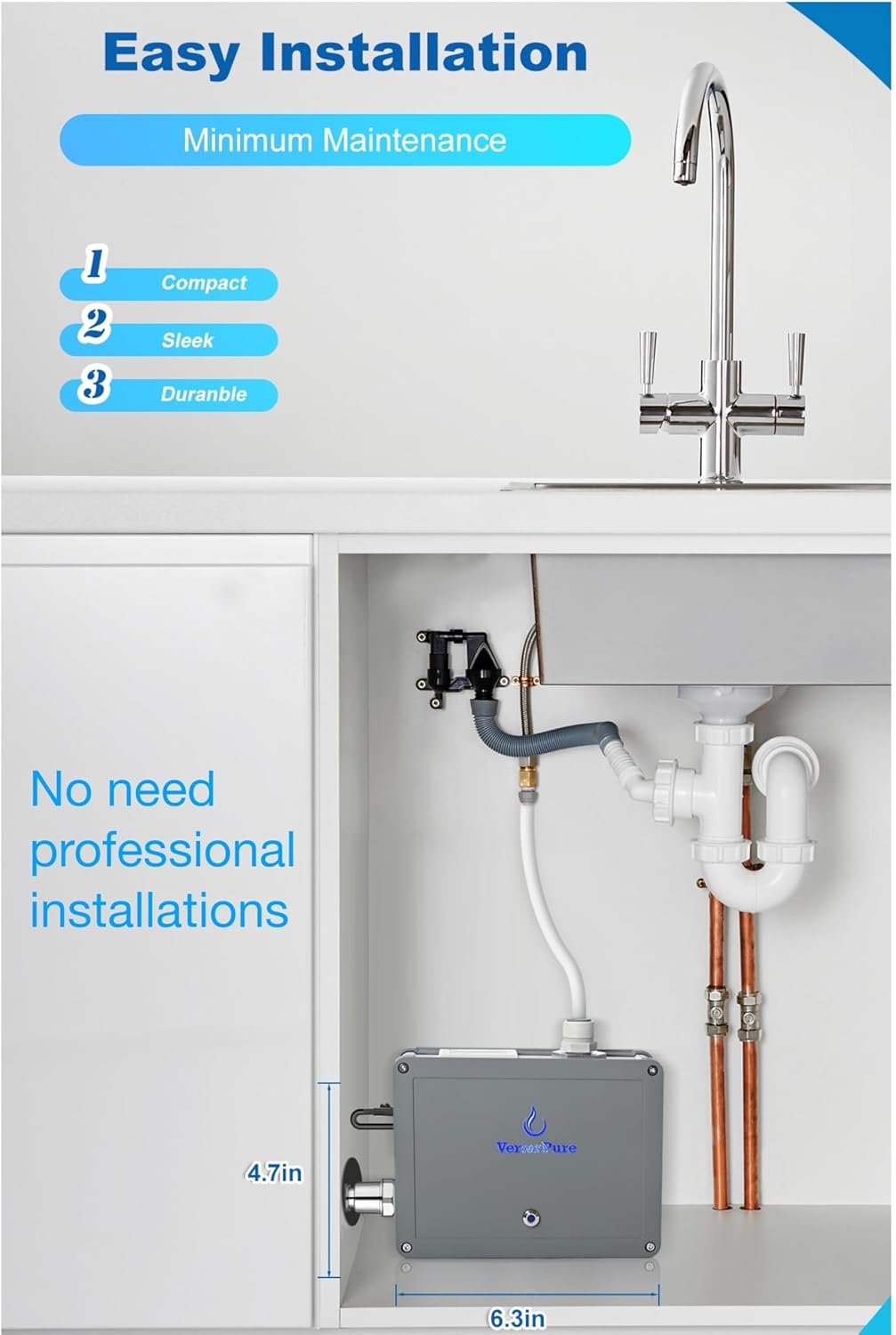 EASY and Safe Installation- This water filter purifier is compact in size, suitable for a small space in RV or boats. The UV-C LED is encased inside the purifier, minimum opportunity of UV light exposure. No need professional installations. No need to replace UV bulb in its life time. Minimum maintenance requirement.