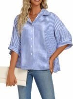 Be the first to review “Vrtige Women’s Casual Stripe Button Down Collar V Neck Half Sleeve Loose Blouse Shirt Top” Cancel reply