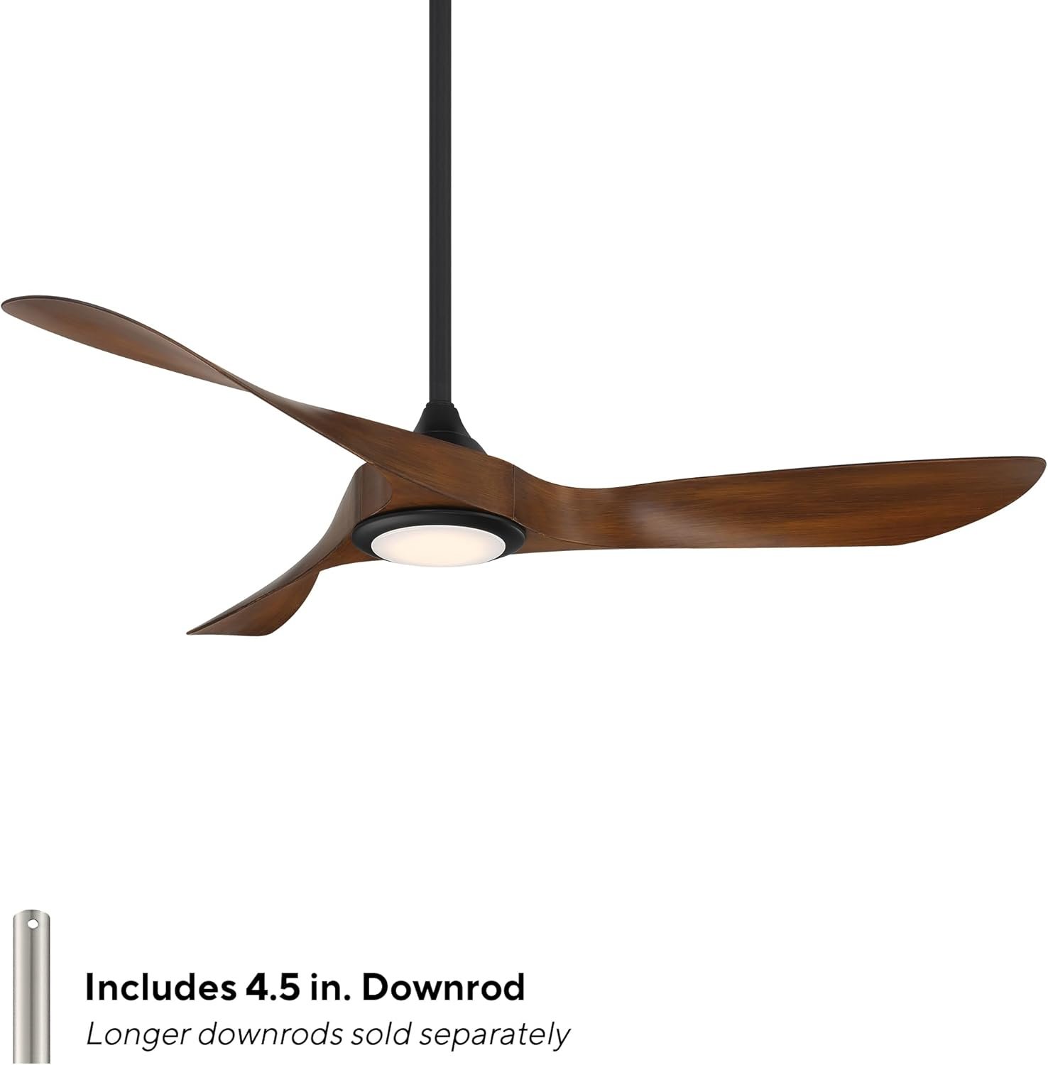 WAC Smart Fans Swirl Indoor and Outdoor 3-Blade Smart Home Ceiling Fan 54in Matte Black Koa with 3000K LED Light Kit and Remote Control works with Alexa and iOS or Android App