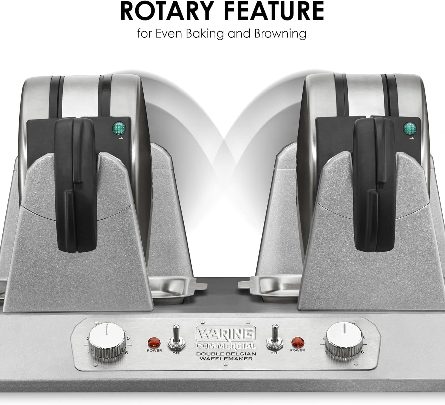 Waring Commercial WW300BX Double Side by Side Belgian Waffle Maker, Coated Non Stick Cooking Plates, Produces 75 Waffles Per Hour,208V, 2700W, 6-15 Phase Plug