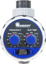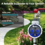 Water timer for hose programmable Simple attach to any standard 3/4″ garden outdoor hose. The valve will close when battery is low, Water and circuit are completely separated to keep Timer safe. Powered by 2*AAA 1.5V Alkaline batteries (excluded), service life will last 6 months.
