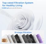 【10-Stage filtration】 Tested by official third-party laboratory (SGS), through 10-stage filtration, G3P800 can effectively reduce PFAS, fluoride, heavy metals like lead, chromium, iron, salts like nitrate and chloride as well as large particles and radioactive substances such as radium. Our RO system can reduce such as vinyl chloride, ethylhexyl acrylate, isobutylene, monobutyl ether, according to the reverse osmosis membrane technical manual.