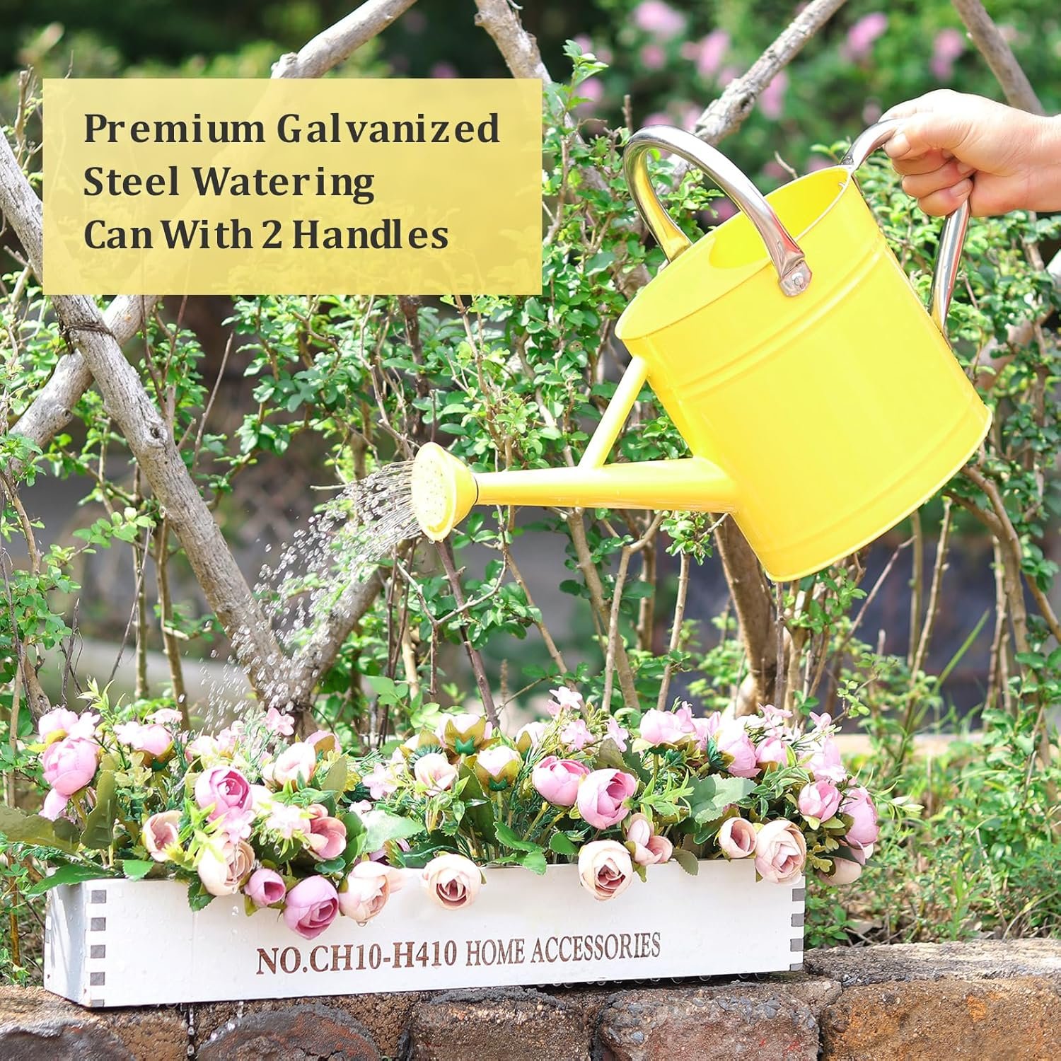 Watering Can for Outdoor Plants&Indoor Plants,Plant Watering Pot 1 Gallon,Metal Flower Garden Water Can Watering Pot,Galvanized Steel Watering Can Outdoor (Yellow)