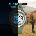 50 m Waterproof: This step counter is waterproof up to 50 m and does not need to be removed when swimming. When the light is dim, the watch’s EL backlight allows you to view the time or data easily. Suitable for water activities, camping or night sports
