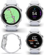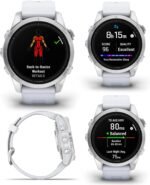 Wearable4U – Garmin epix Pro (Gen 2), 42mm, High Performance Smartwatch, Advanced Training Technology, Built-in Flashlight, Whitestone with Black Earbuds Bundle